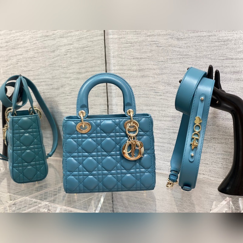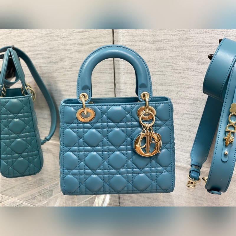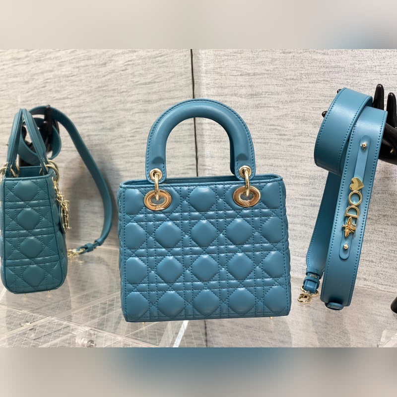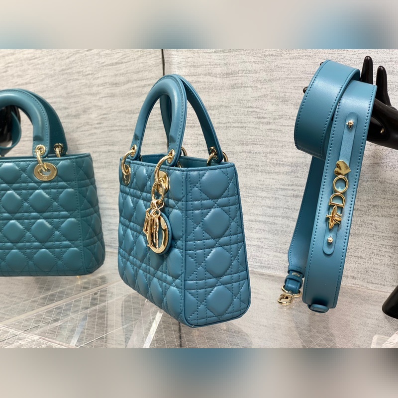 6개의 배지 밝은 금색 금속 액세서리 Dior 배지로 장식된 개인화된 넓은 어깨 스트랩 손으로 들거나 어깨에 메거나 몸에 걸칠 수 있음 크기 20 x 16.5 x 8cm
