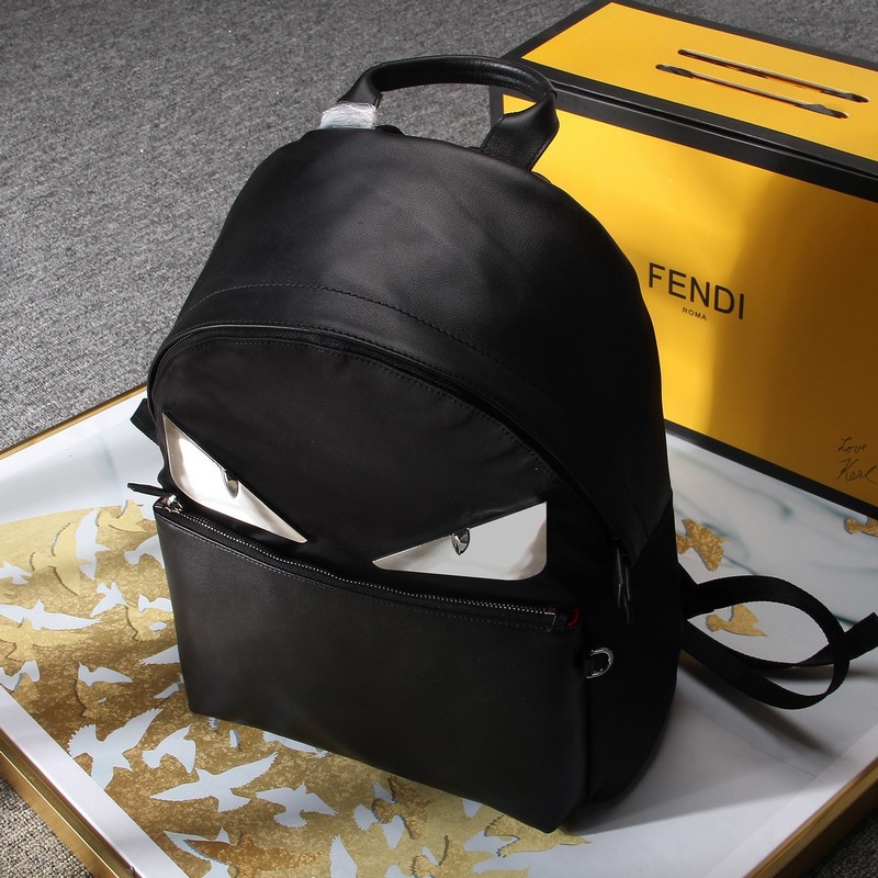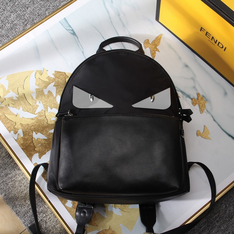 펜디 나일론 패치워크 소가죽 배낭 BAG BUGS 아이 패턴 앞면 지퍼 포켓 통기성 테크니컬 메시 소재 뒷면 더블 지퍼 잠금장치 내부 포켓 31cm*11*36cm 항목 번호: XY9618780