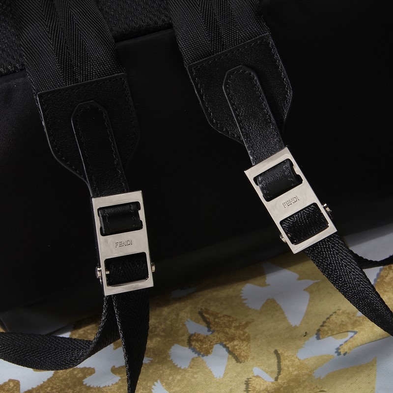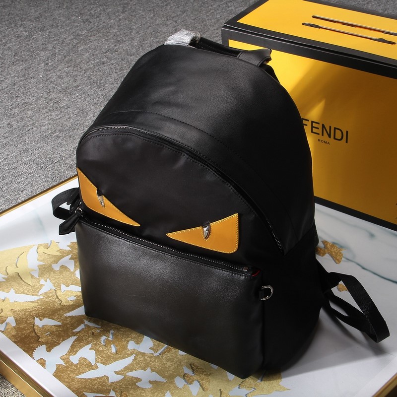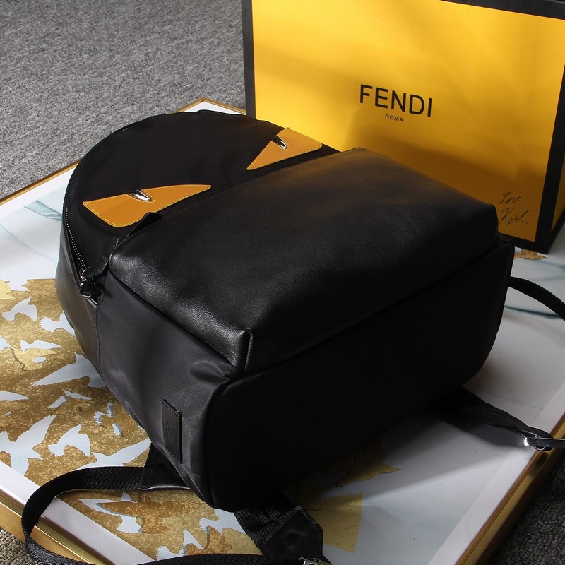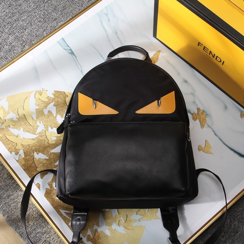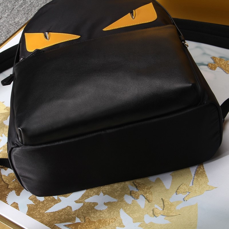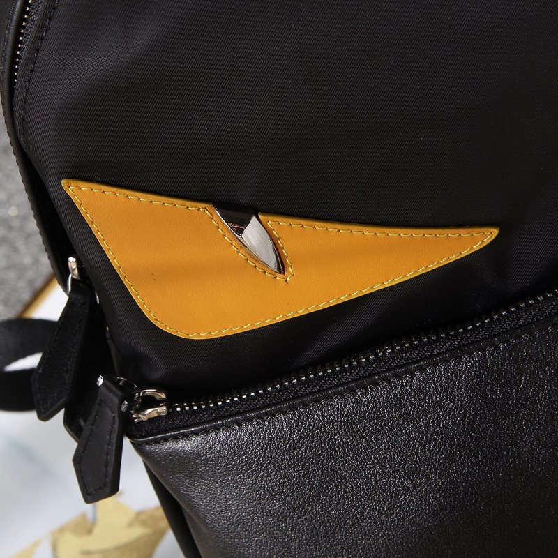 FENDI 나일론 패치워크 소가죽 백팩 BAG BUGS 아이 패턴 앞면 지퍼 포켓 통기성 테크니컬 메시 소재 뒷면 더블 지퍼 잠금장치 내부 포켓 31cm*11*36cm 항목 번호: XY9618780