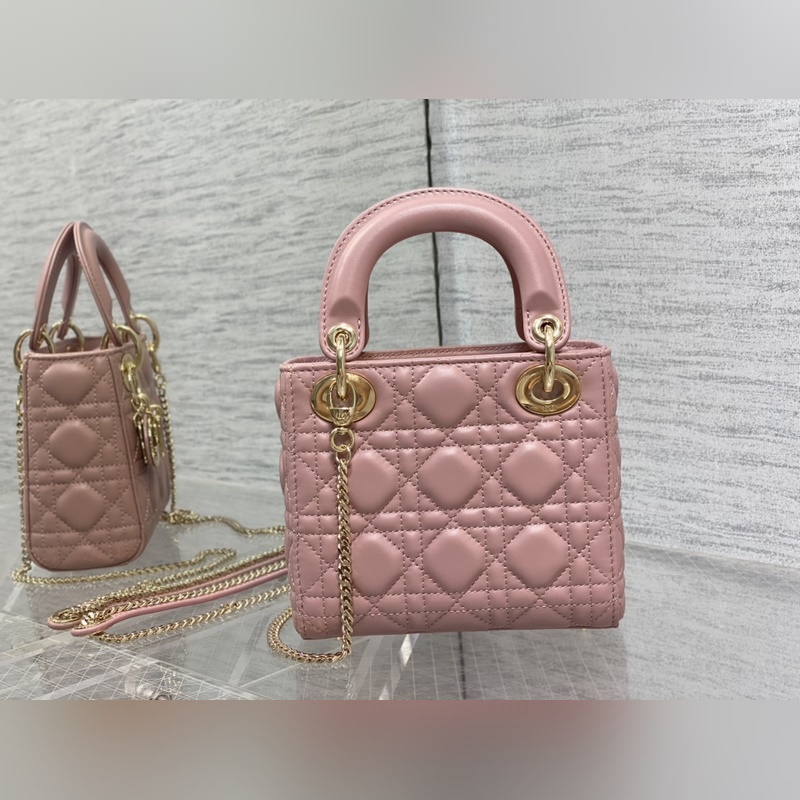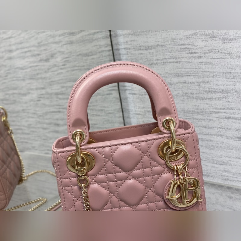 5055-빈티지 핑크 양가죽 클래식한 다이애나 백 3칸으로 구성된 필수