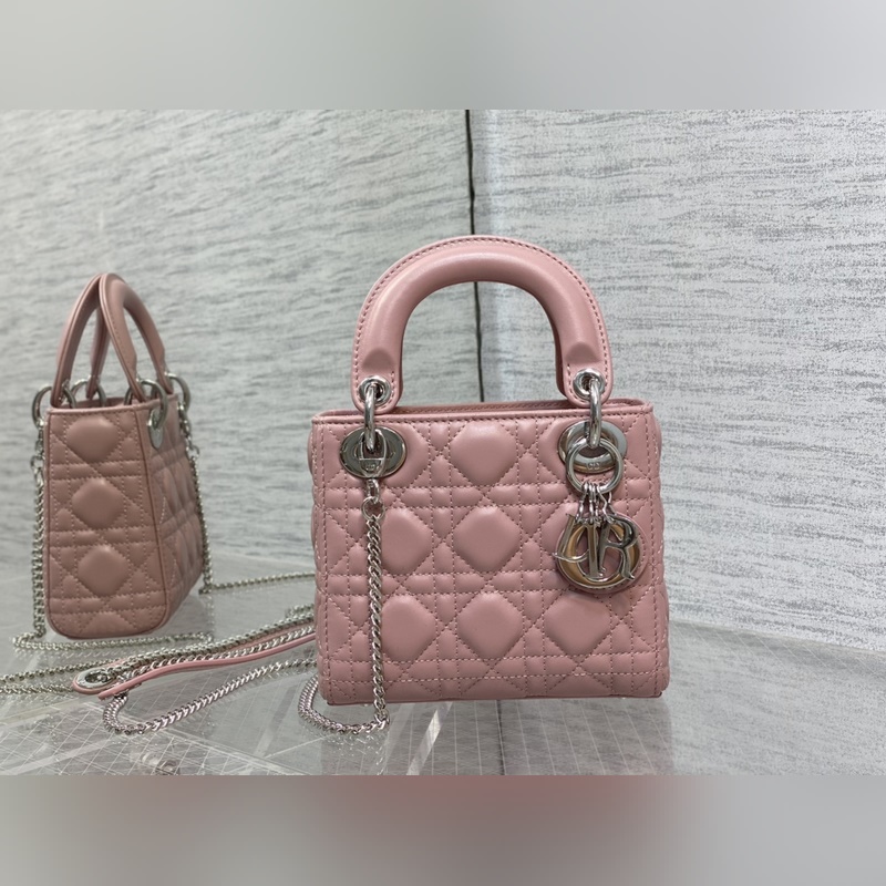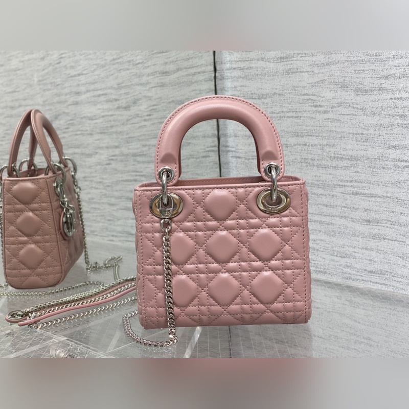 5055-빈티지 핑크 양가죽 클래식한 다이애나 백 3칸으로 구성된 필수