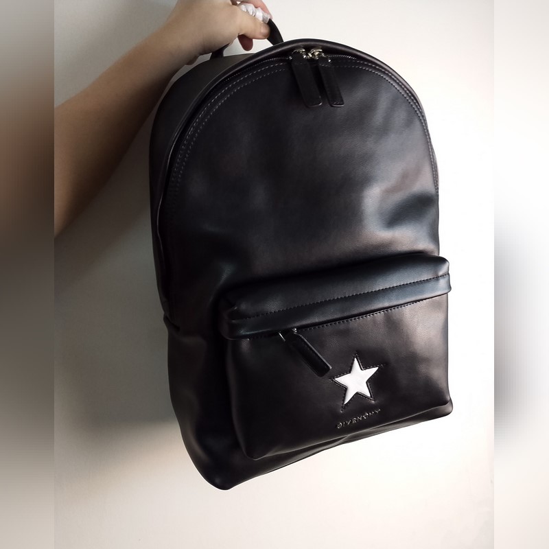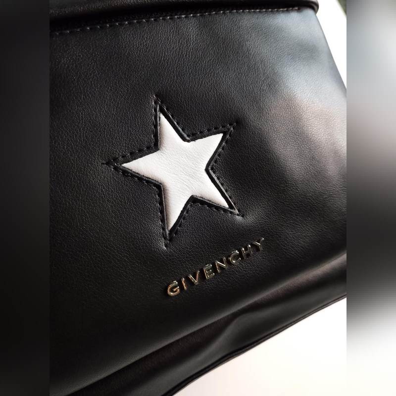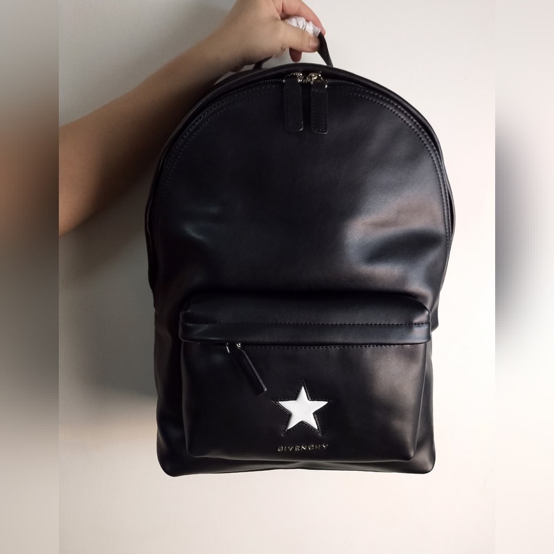지방시 풀 가죽 백팩(흰색 별 모양 스티치) 최상급 소가죽 고급 실버톤 하드웨어 100% 면 안감 크기: 높이 45cm x 폭 31cm x 깊이 15cm 아이템 번호: YX9618950