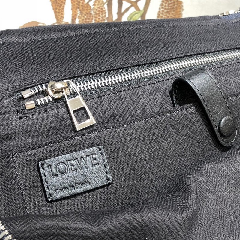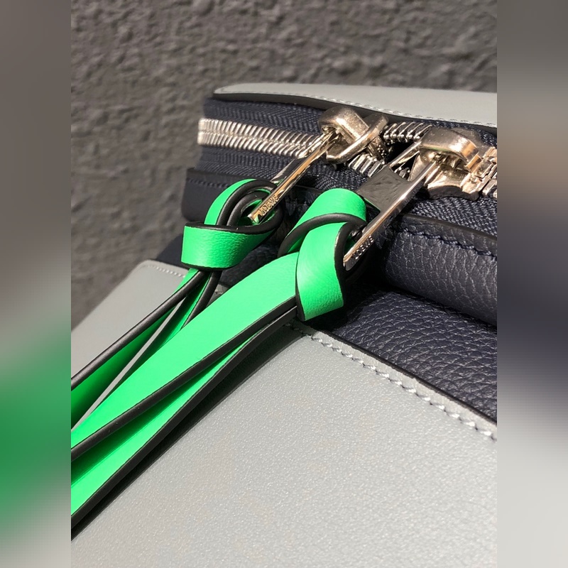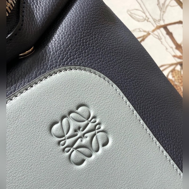 로에베 블루와 그레이 배낭 지퍼 손잡이에는 가죽 매듭이 달려 있고 측면