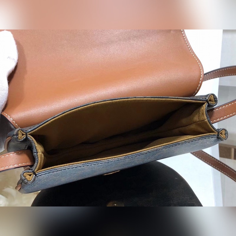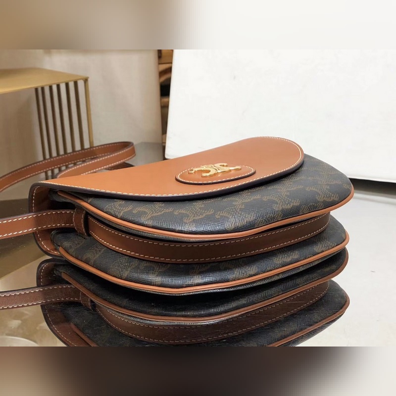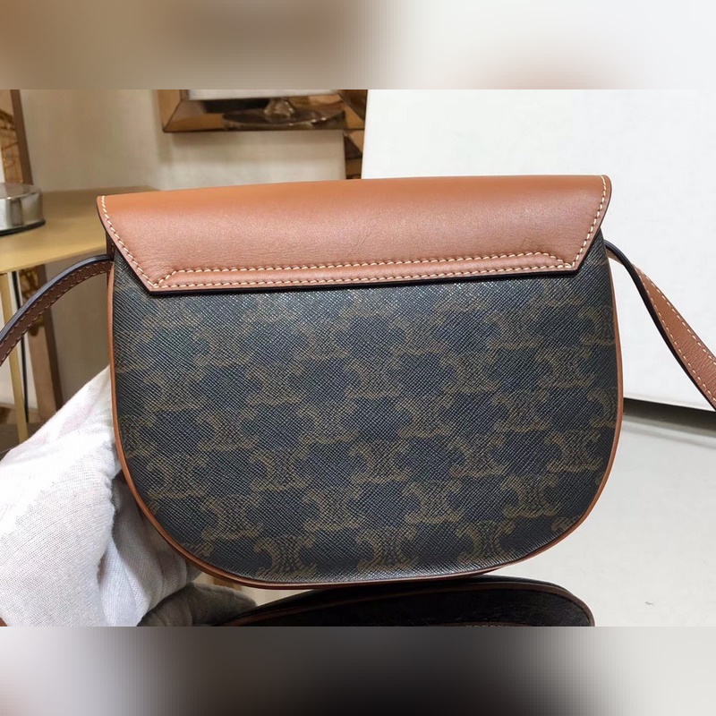 크기: 21 x 19 x cm 인조 가죽/소가죽 안감은 천 소재 크로스백 또는 어깨에 메는 스타일 스냅 버튼 잠금 길이 45cm 조절 가능한 어깨 스트랩 포함 승리의 트라이앵글 타원형 패치 No.: 194152BZJ.04LU