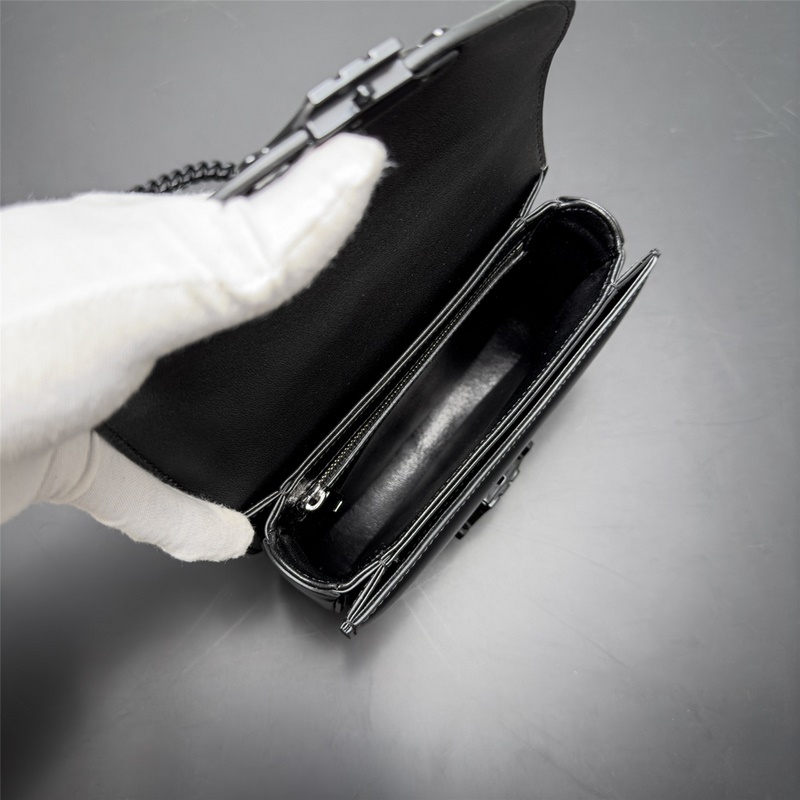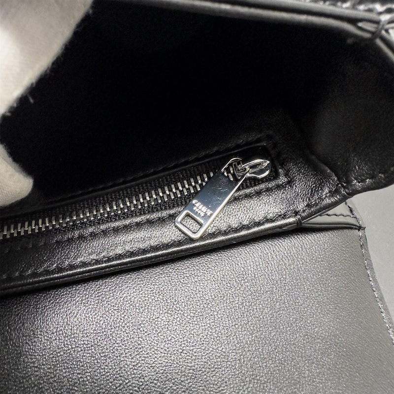 7 x 6 x 2인치(19 x 15 x 6cm) 소가죽 양가죽 안감 크로스 바디와 숄더 TRIOMPHE 금속 자물쇠 3개의 내부 칸막이 지퍼와 평평한 주머니 내부 20인치(50cm) 길이의 체인 아이템 번호: 110973