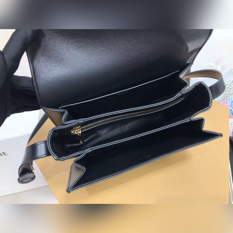 CELINE 신제품 CUIR TRIOMPHE TEEN 작은 개선문 상자 [승리의 아치 로고 가죽 태그] 양가죽 안감의 소가죽 절제된 고급스러운 복고풍 스타일 섬세한 로고가 새겨진 새로운 버전의 가죽 라벨 어깨에 메거나 크로스 바디로 착용하거나 조절 가능한 어깨 끈으로 손에 들 수 있습니다. 특히 일상적인 캐주얼 룩에 적합합니다. 크기: 22cm (188423 large)