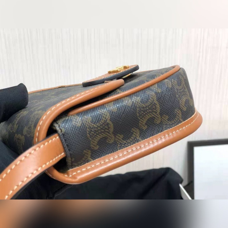 15 x 11 x 4cm(6 x 4 x 2인치) TRIOMPHE CANVAS 로고 프린트 소가죽 트림 안감 크로스 바디와 숄더 금속 플랩 TRIOMPHE 스냅 버튼 잠금 1개의 메인 수납공간 1개의 평평한 주머니 길이 21인치(54cm)의 조절 가능한 가죽 어깨 스트랩 아이템 번호: 196702BZJ.04L