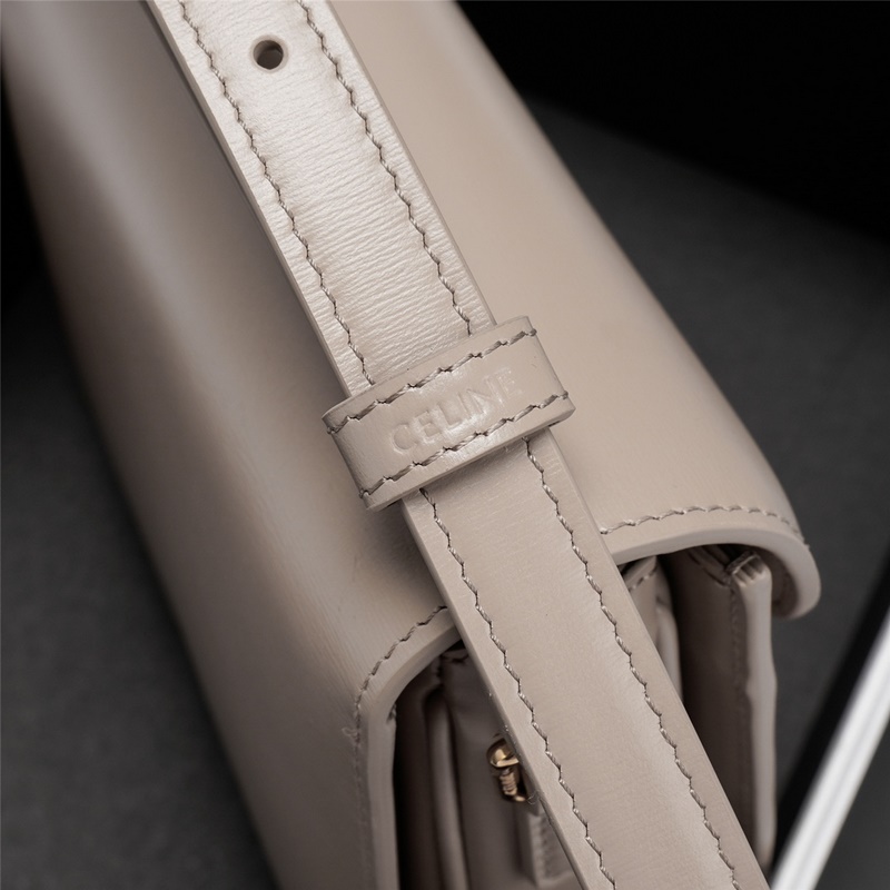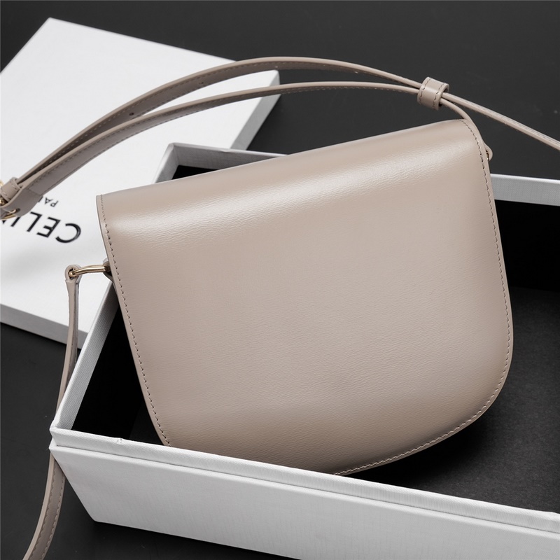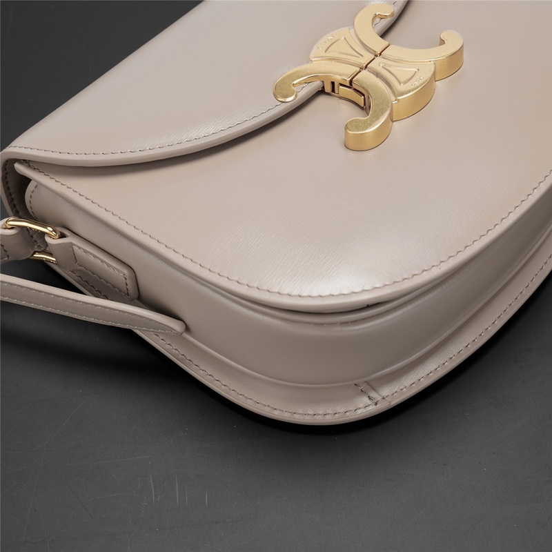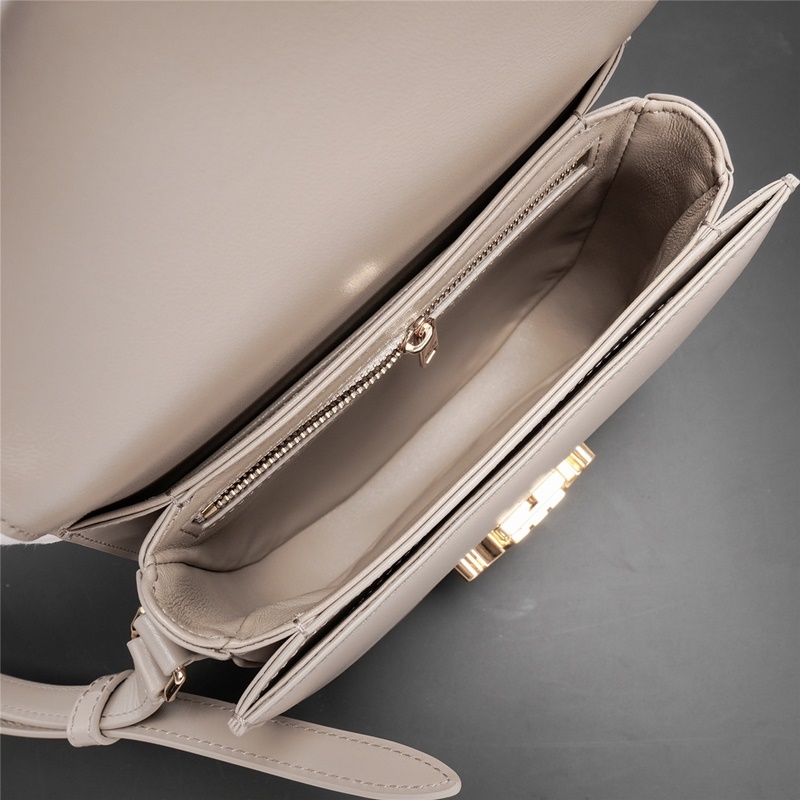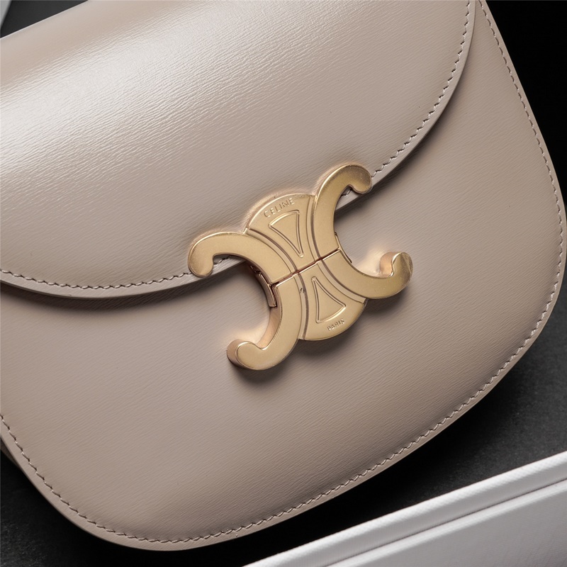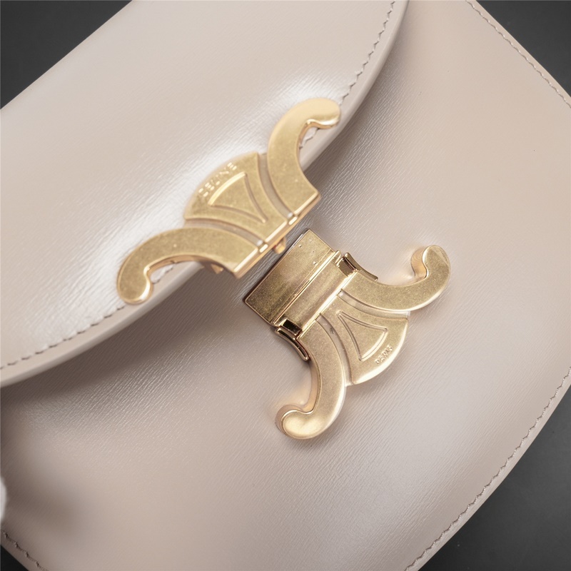 7 x 6 x 2인치(18.5 x 16 x 6cm) 소가죽 양가죽 안감 크로스 바디와 숄더 금속 TRIOMPHE 로고 클로저 3개의 내부 수납공간 지퍼와 평평한 주머니 내부 110413