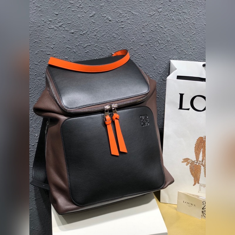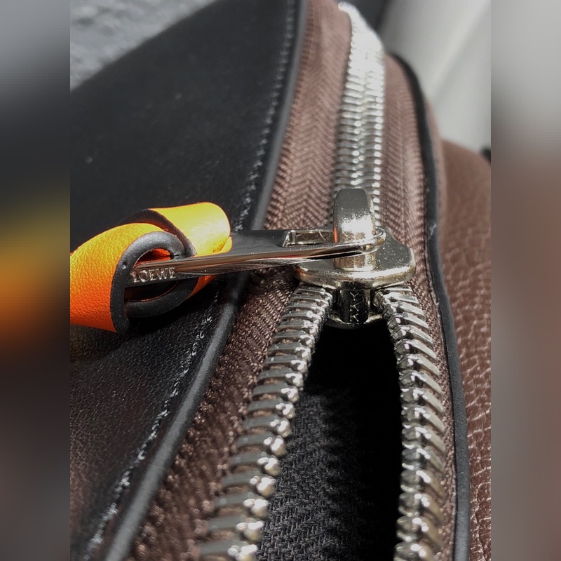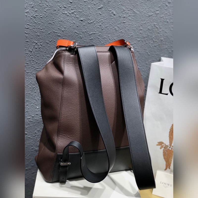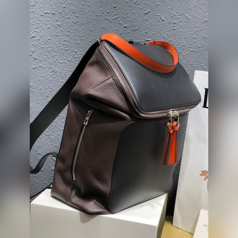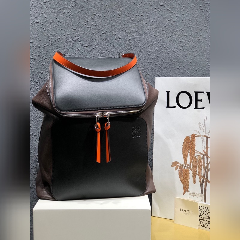 로에베 검은색에 오렌지색 배낭 지퍼 손잡이의 새 버전에는 가죽 매듭이