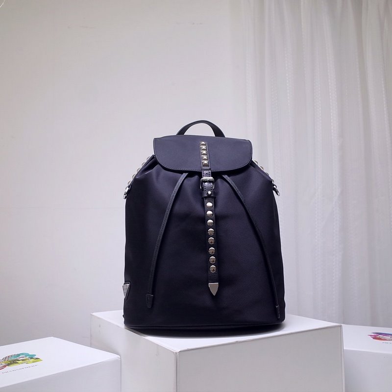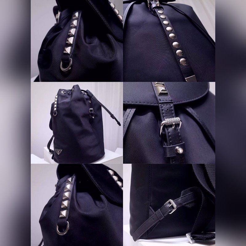 프라다 뉴 윌로우 스터드 백팩 가죽 소재의 단일 손잡이 길이 조절이