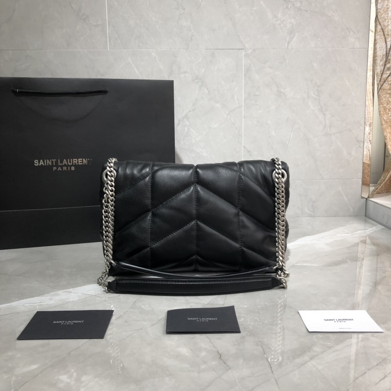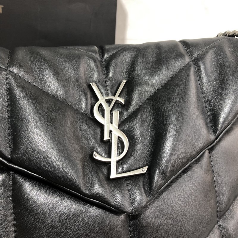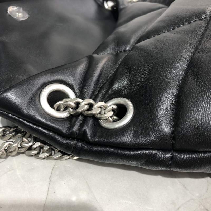 29cm_LOULOU PUFFER 퀼팅 양가죽 가방 100% 양가죽으로 만들어져 촉감이 부드럽고 섬세하며 마치 구름을 안고 있는 듯한 느낌을 줍니다. 클래식한 Y 패밀리 로고 체인 단추 장식 하드웨어는 모두 브러시드 실버 메탈로 만들어졌으며 매트하고 반투명한 질감으로 매우 세련된 느낌을 줍니다. 크기: 29x17x11cm 모델: 577476