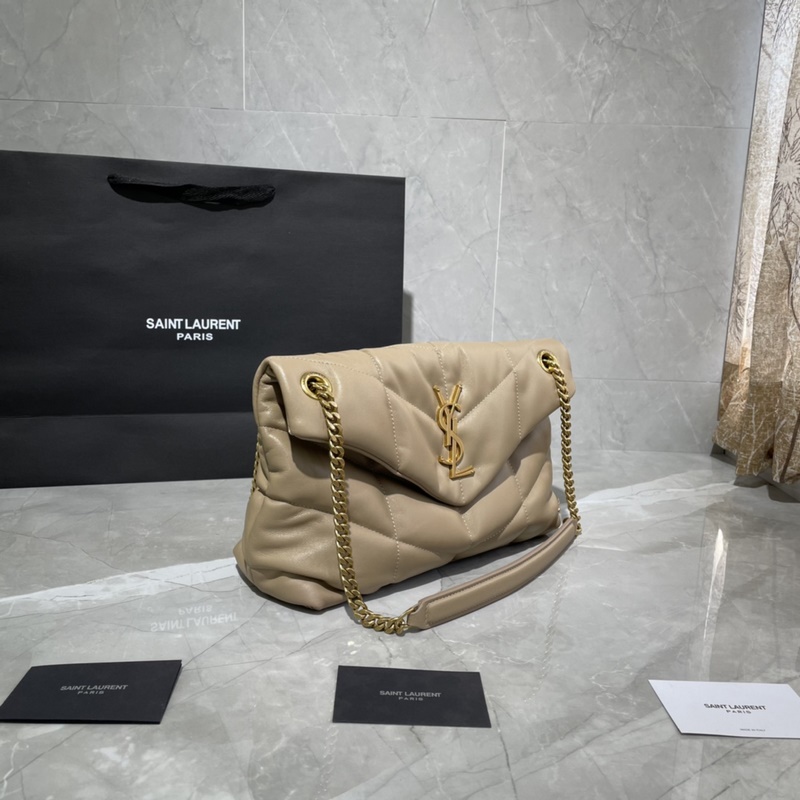 LOULOU PUFFER 100% 양가죽으로 만든 퀼팅 양가죽 가방은 부드럽고 섬세한 촉감으로 구름에 안기는 듯한 느낌을 줍니다. 클래식한 Y 패밀리 로고 체인 단추 장식 하드웨어는 모두 에이지드 메탈로 만들어져 복고풍의 질감과 독특한 매력을 선사합니다. 크기: 29x17x11cm 모델: 577476