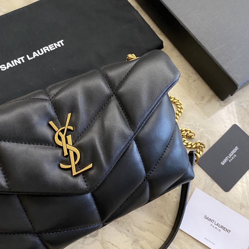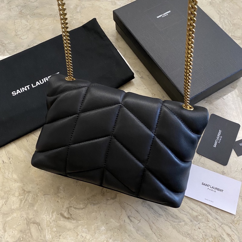생 로랑 YSL LOULOU PUFFER 미니 백은 반으로 접어서 한쪽 어깨에 메는 퀼팅 양가죽 백 브러시드 메탈 하드웨어 그로그랭 안감 마그네틱 스냅 잠금장치 내부 지퍼 포켓 1개 크기 23*15.5*8.5cm 코드 620333