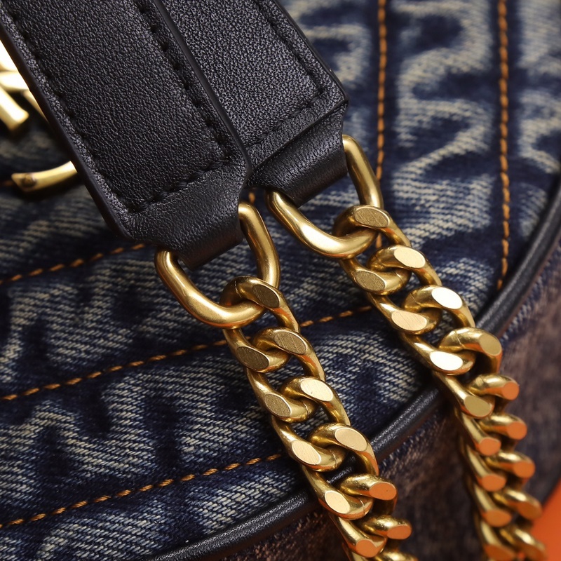 [독점적인 실제 배경] 초극세사 원단 싱글 소스 VINYLE_둥근 모양의 데님 가방. 이 데님 가방 시리즈는 특히 매력적이며 어떤 옷과도 잘 어울리고 실용적입니다. 워싱 처리된 데님은 복고풍의 매력이 있으며 매우 다재다능합니다. 어떤 옷과도 잘 어울리는 멋진 가방입니다! 모델: 610436 데님. 크기: 17×17×5.5cm