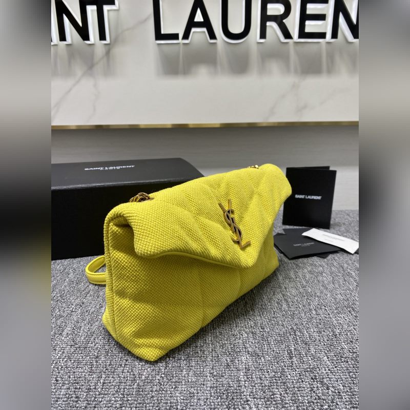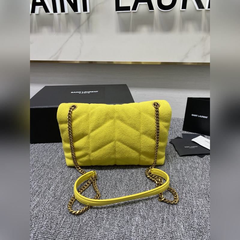 생 로랑의 새로운 루루 캔버스 백 구름 모양의 디테일이 돋보이는 완벽한 디자인 골드 로고와 골드 체인이 가방에 세련된 느낌을 더해줍니다. 크기: 23x15.5x8.5cm 코드: 333