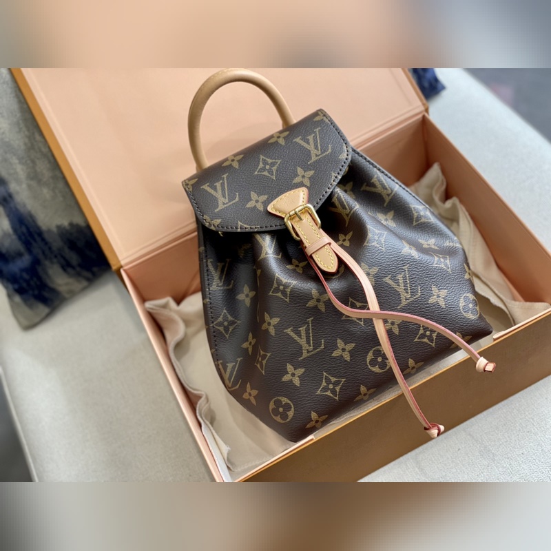 접이식 상자 비행기 상자 LV 백팩 클래식! 작고 귀여우면서도 실용적입니다. 꽃무늬와 소가죽 크기: 17*21cm