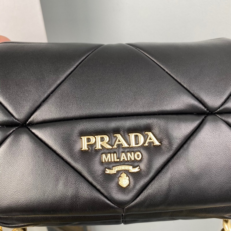[최고의 오리지널 싱글] 새로운 소형 사이즈 1BD292A 이 시스템 소프트 램스킨 숄더백은 아름다운 스티치로 만든 삼각형 패턴으로 장식되어 브랜드의 장인 정신을 강조합니다. 플랩 디자인과 탈부착 가능한 체인 손잡이는 보석의 이미지를 연상시키며 앞면의 금속 로고에는 브랜드의 시그니처인 삼각형 스티치가 새겨져 있어 브랜드의 스타일을 한눈에 알아볼 수 있습니다. 손으로 들거나 어깨에 메거나 몸에 걸칠 수 있어 기능성이 뛰어납니다. 아기를 좋아한다면 빨리 구입하세요! 크기: 21 x 15 x 6.5cm