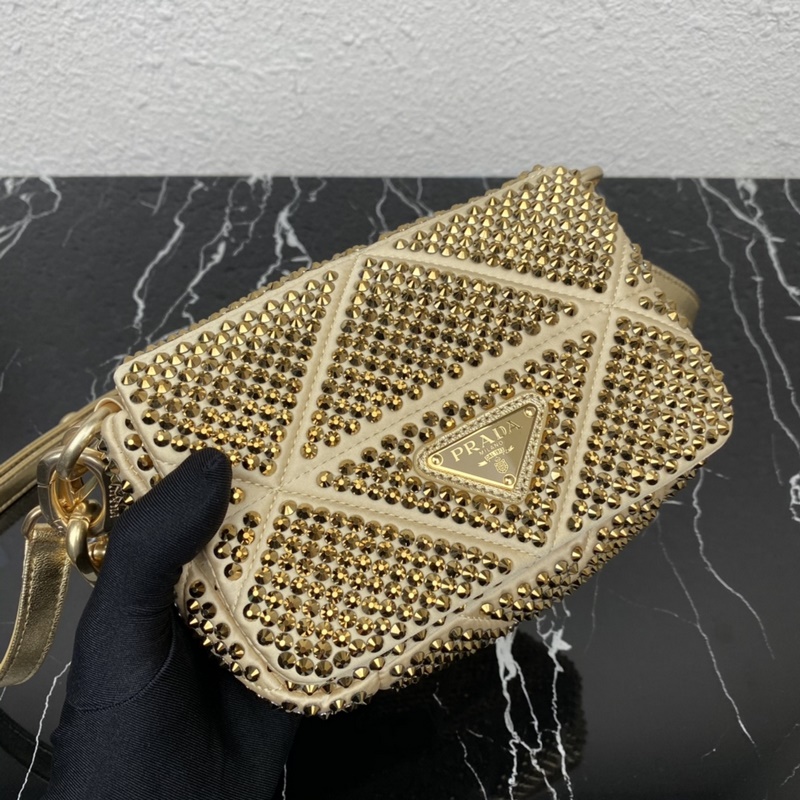 [최고의 오리지널 싱글] 2023년 신상 크리스탈 백 1BD329 이 모델은 모조 크리스탈과 스티치로 만든 바디에 아름다운 삼각형 패턴이 엮인 미니 핸드백으로 브랜드의 장인 정신을 반영합니다. 체인 핸들 디자인은 주얼리 세계를 연상시킵니다. 반짝이는 요소가 가방 전체에 걸쳐 있고 앞면에는 금속 삼각형 로고가 장식되어 있습니다. 마음에 드시면 서둘러 구입하세요. 크기: 길이 17cm*높이 11.5cm*너비 6cm