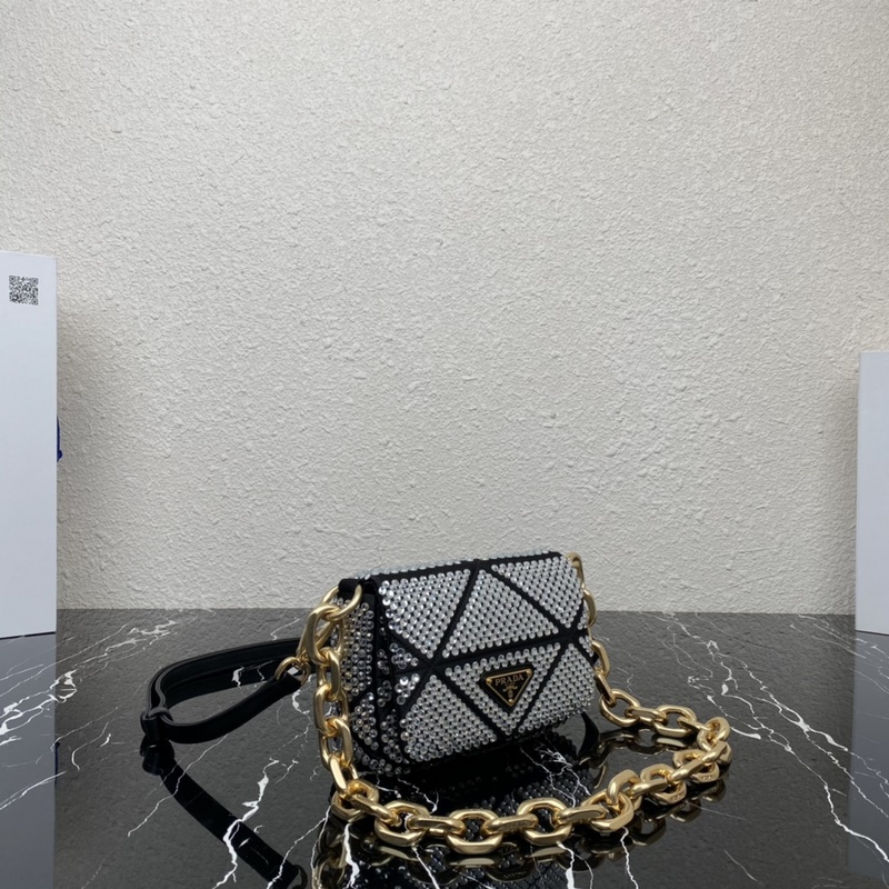 [최고의 오리지널 싱글] 2023년 신상 크리스탈 백 1BD329 이 모델은 모조 크리스탈과 스티치로 만든 바디에 아름다운 삼각형 패턴이 엮인 미니 핸드백으로 브랜드의 장인 정신을 반영합니다. 체인 핸들 디자인은 주얼리 세계를 연상시킵니다. 반짝이는 요소가 가방 전체에 걸쳐 있고 앞면에는 금속 삼각형 로고가 장식되어 있습니다. 마음에 드시면 서둘러 구입하세요. 크기: 길이 17cm*높이 11.5cm*너비 6cm