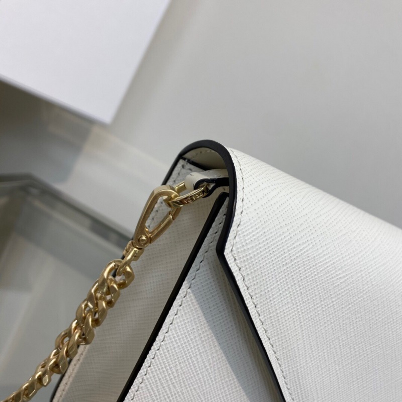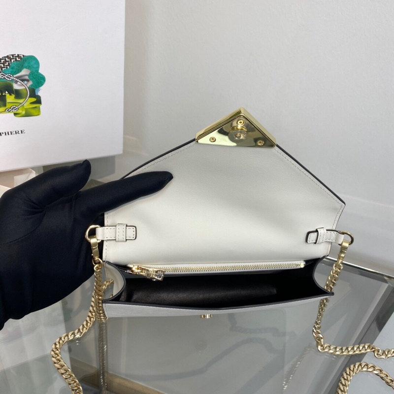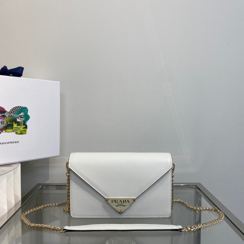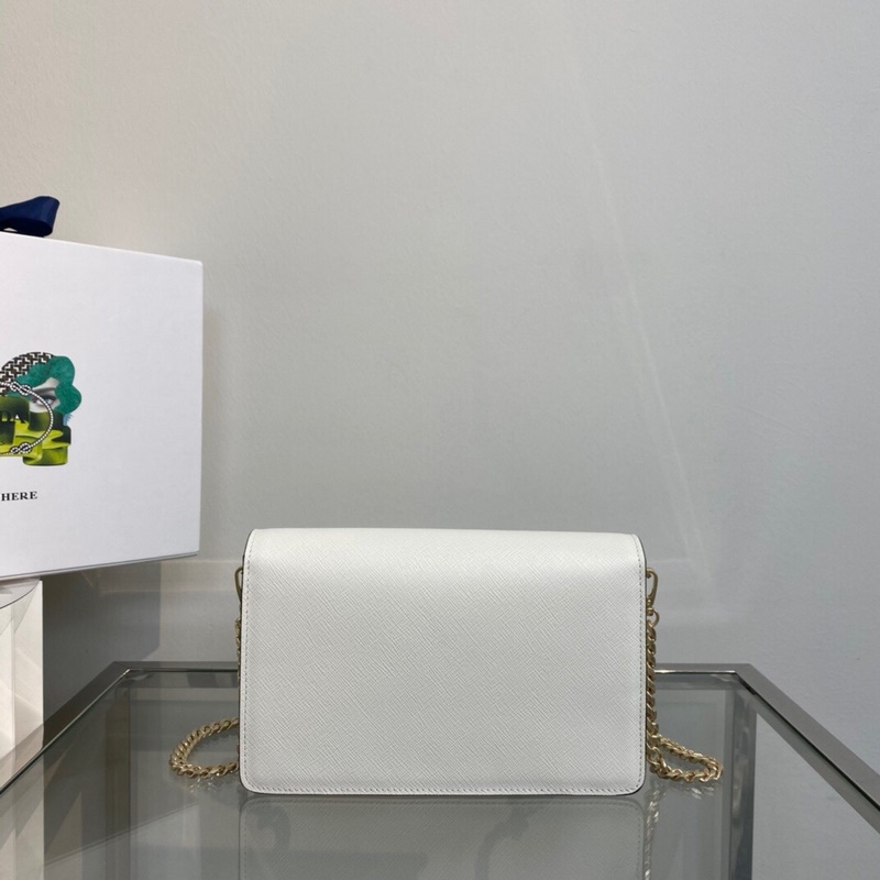 [최고 품질의 정품] 새로운 크로스바디 백 1BD318이 출시되었습니다! 이 플랩 숄더백은 사피아노 가죽으로 만들어졌으며 양가죽 안감이 있습니다. 독창적인 디자인과 여성스러운 디자인이 한눈에 들어옵니다. 플랩 클로저는 끝 부분에 에나멜로 칠한 금속 삼각형 로고로 장식되어 있으며 탈착식 긴 어깨 끈이 함께 제공됩니다. 또한 핸드백으로도 사용할 수 있습니다. 절묘하게 매력적이고 심플하며 분위기 있는 제품입니다. 서둘러 구입하세요! 크기: 길이 21.5cm x 높이 14cm x 바닥 4cm