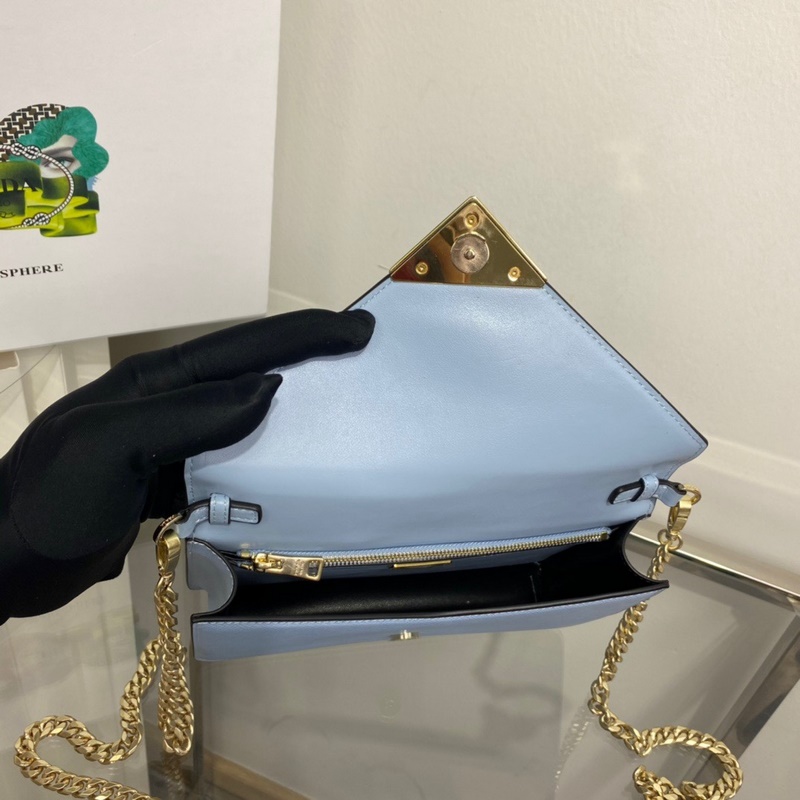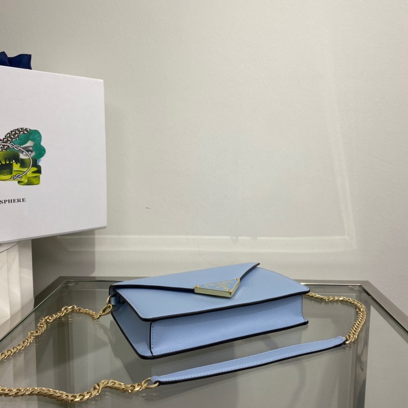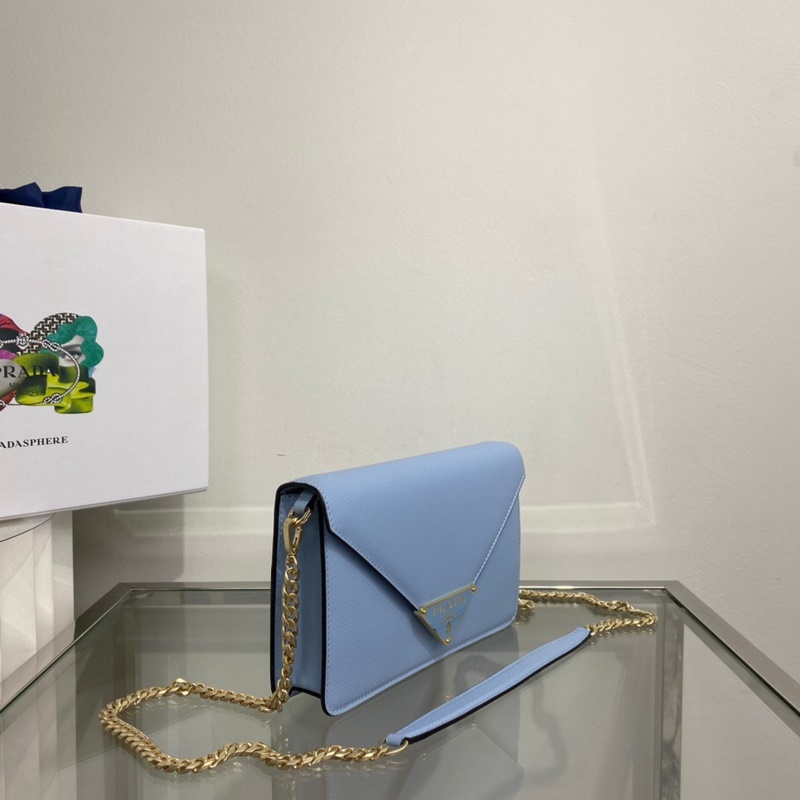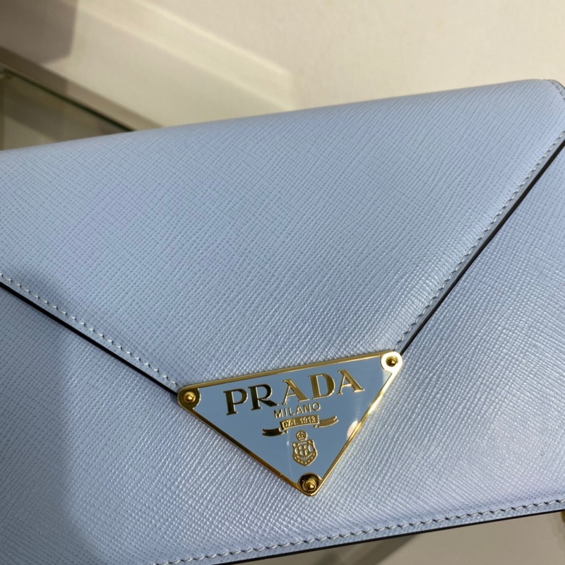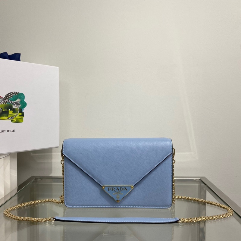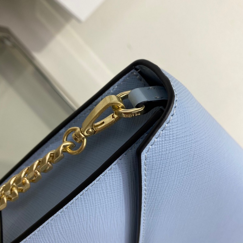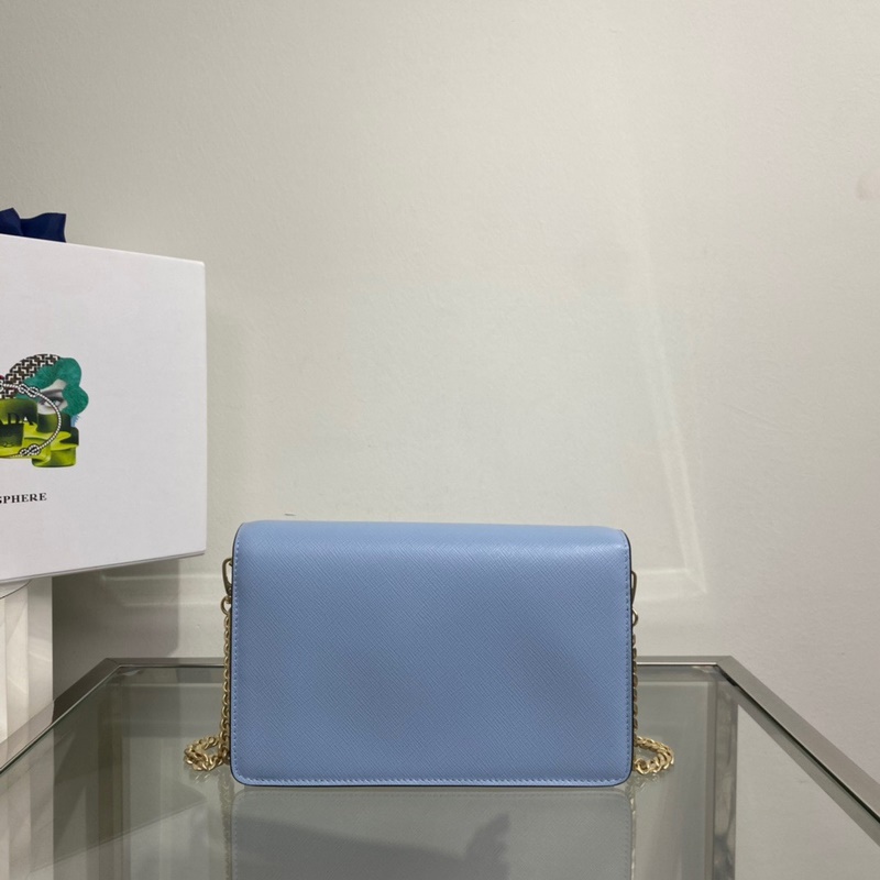 [최고 품질의 정품] 새로운 크로스바디 백 1BD318이 출시되었습니다! 이 플랩 숄더백은 사피아노 가죽으로 만들어졌으며 양가죽 안감이 있습니다. 독창적인 디자인과 여성스러운 디자인이 한눈에 들어옵니다. 플랩 클로저는 끝 부분에 에나멜 페인트로 칠한 금속 삼각형 로고로 장식되어 있으며 탈착식 긴 어깨 끈이 함께 제공됩니다. 또한 핸드백으로도 사용할 수 있습니다. 절묘한 매력과 심플함 그리고 분위기 있는 디자인을 자랑합니다. 서둘러 구입하세요! 크기: 길이 21.5cm x 높이 14cm x 바닥 4cm