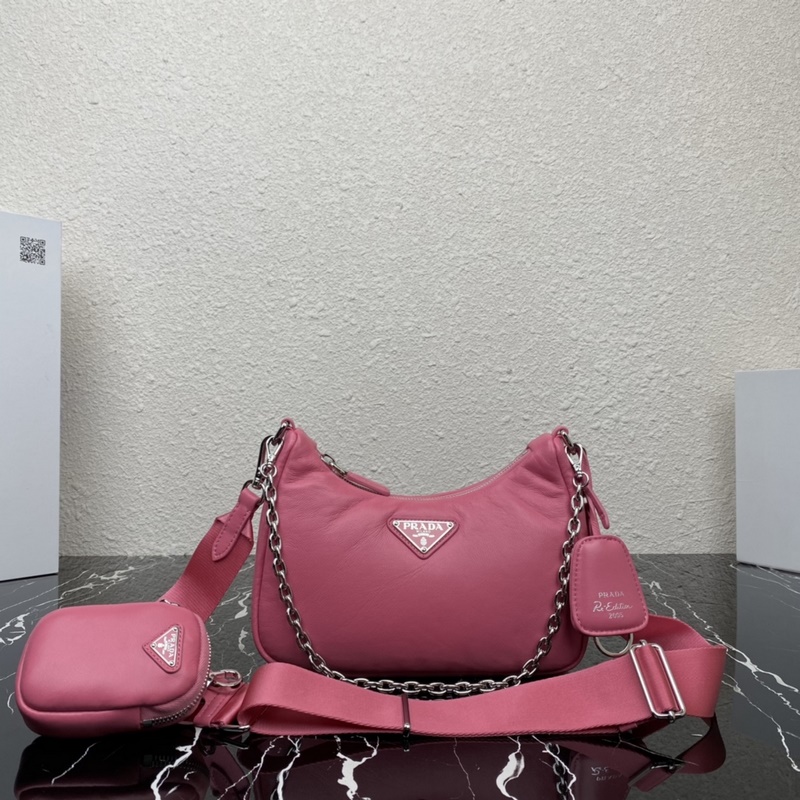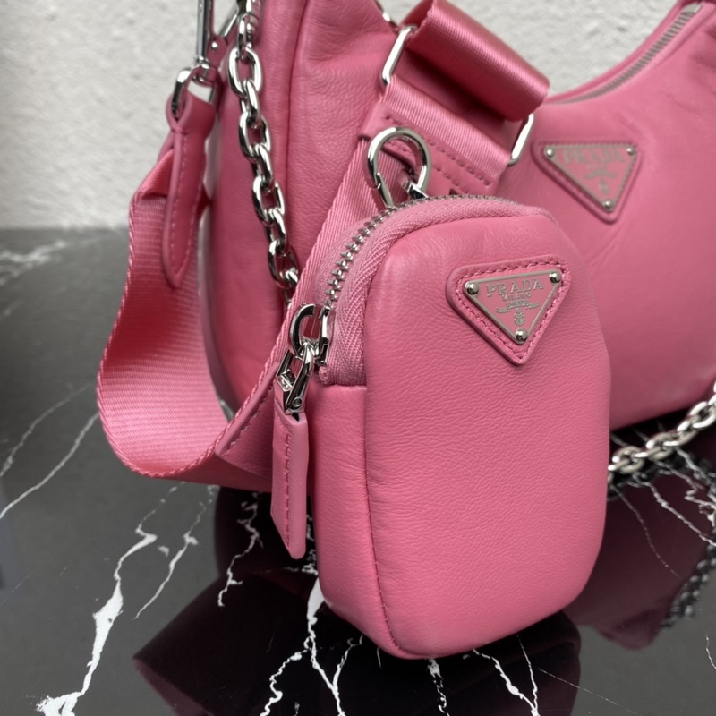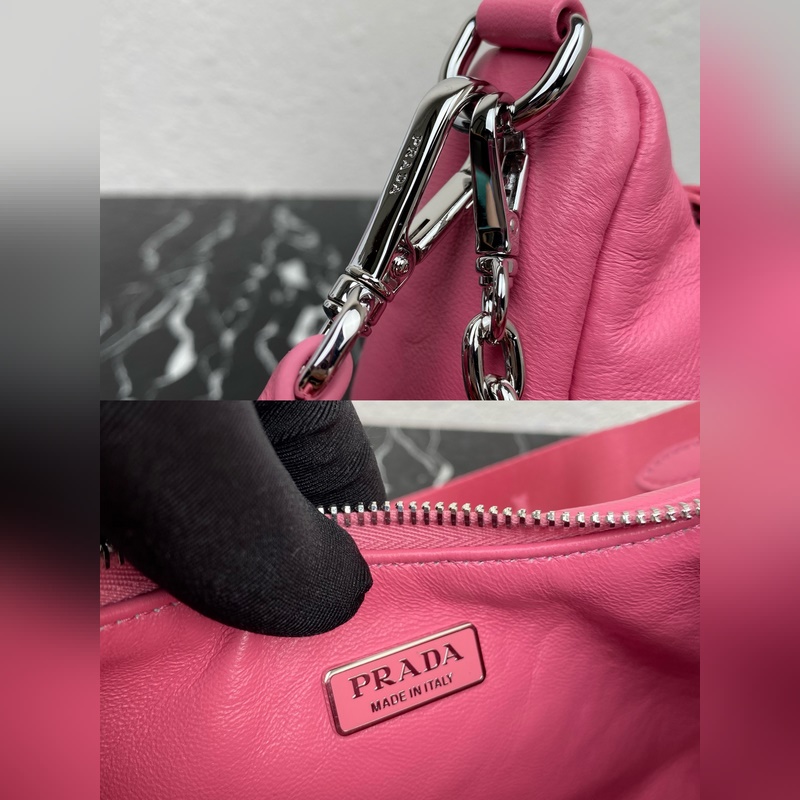 [최고 품질의 정품] 램스킨 3-in-1 1BH204 이 3-in-1 안감 어깨 가방은 부드러운 램스킨으로 만들어졌으며 심플한 모양과 부드러운 촉감이 특징입니다. 같은 색상의 삼각형이 대비되는 색상의 각인된 로고를 둘러싸고 있어 디자인 스타일을 강조하는 질감 있는 3차원 대비 효과를 만들어 냅니다. 탈부착이 가능한 나일론 숄더 스트랩과 손잡이가 함께 제공되며 저는 숄더 스트랩의 파우치가 마음에 듭니다. 정말 귀엽습니다! 특히 부드러운 느낌이고 실용적이며 캐주얼합니다. 아기들 서둘러서 사세요! 크기: 길이 22 x 높이 18 x 밑면 6.5cm