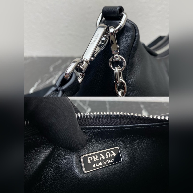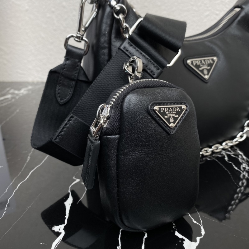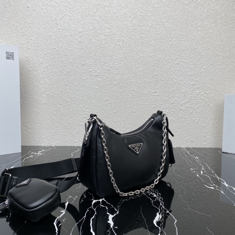 [최고 품질의 정품] 램스킨 3-in-1 1BH204 이 3-in-1 안감 어깨 가방은 부드러운 램스킨으로 만들어졌으며 심플한 모양과 부드러운 촉감이 특징입니다. 같은 색상의 삼각형이 대비되는 색상의 각인된 로고를 둘러싸고 있어 디자인 스타일을 강조하는 질감 있는 3차원 대비 효과를 만들어 냅니다. 탈부착이 가능한 나일론 숄더 스트랩과 손잡이가 함께 제공되며 저는 숄더 스트랩의 파우치가 마음에 듭니다. 정말 귀엽습니다! 특히 부드러운 느낌이고 실용적이며 캐주얼합니다. 아기들 서둘러서 사세요! 크기: 길이 22 x 높이 18 x 밑면 6.5cm