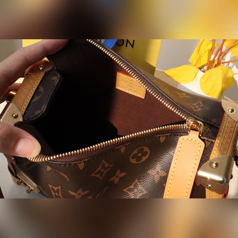 오래된 꽃(노란색 껍질) 사이드 트렁크 PM 핸드백: 부드러운 형태와 강한 이미지 각진 형태와 박스 형태가 결합된 형태 클래식한 모노그램의 해석으로 꽃을 표현한 디자인이 돋보이는 가방입니다. 상체 부분도 훌륭하며 어떤 상황에서도 제 역할을 다할 수 있고 스트리트 스타일도 가능합니다. 용량이 크고 크기는 21 x 14 x 6cm입니다!