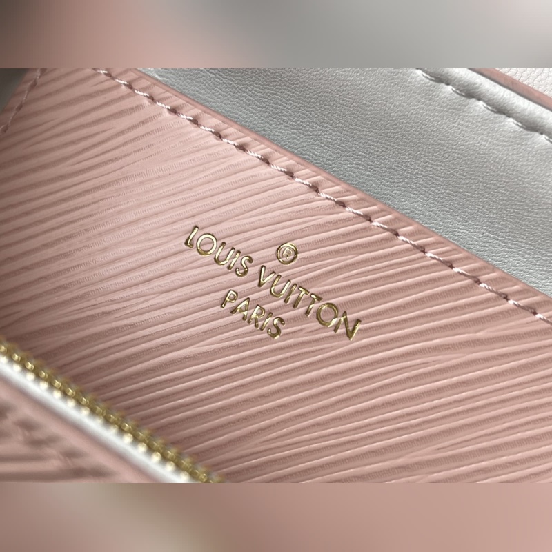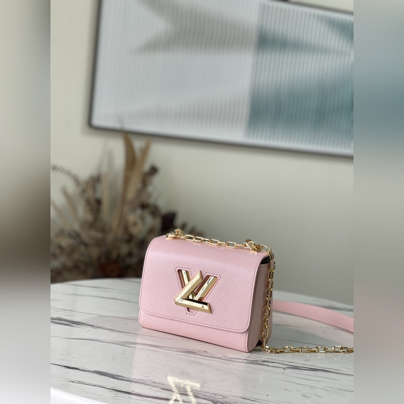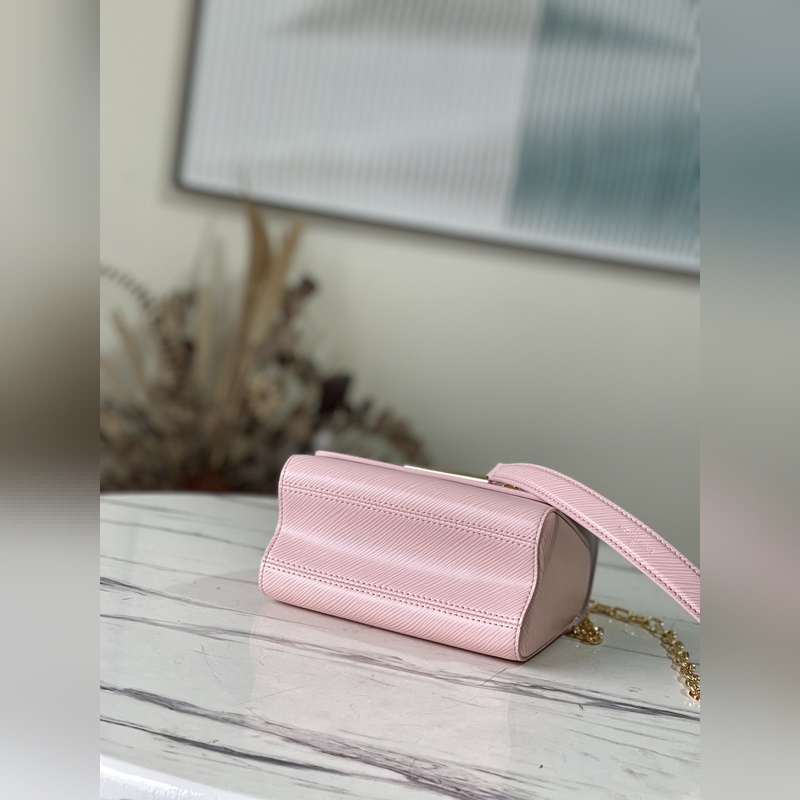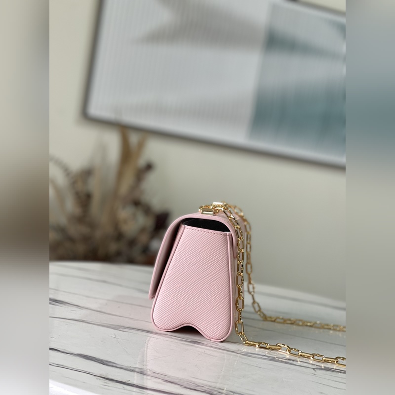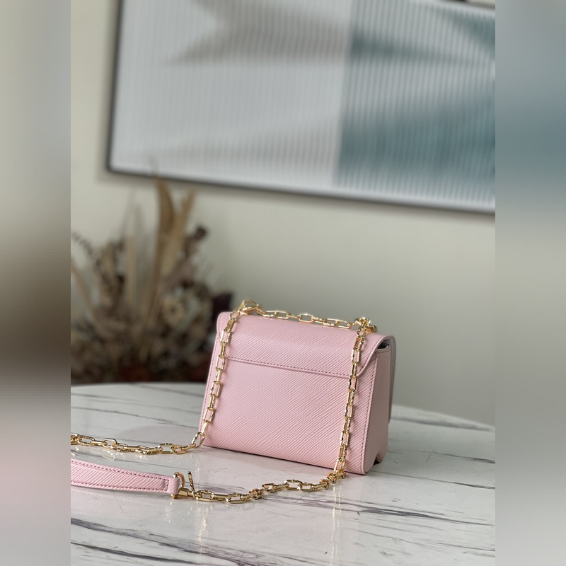 최고급 오리지널 M21027 핑크 이 트위스트 클러치백은 에피 가죽으로 만들어졌으며 에나멜로 장식된 모노그램 플라워가 면 처리된 체인에 매달려 있는 것이 특징입니다. 손으로 들거나 팔꿈치에 걸거나 어깨에 메거나 몸에 걸칠 수 있는 똑똑한 후크 앤 루프 잠금장치가 달려 있습니다. 크기: 19 x 15 x 9cm