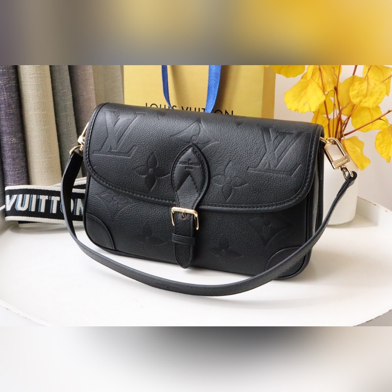 이 다이앤 백은 루이비통의 클래식한 모노그램 앙프렝뜨 엠보싱 가죽으로 만