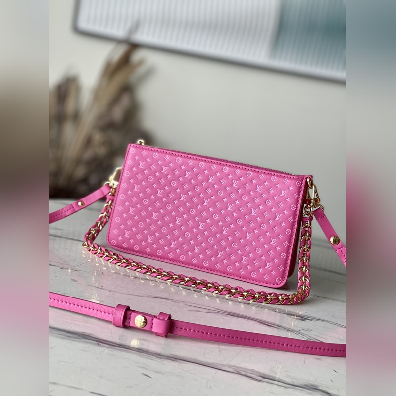 최고의 오리지널 싱글 M82232 로즈 바뱅 체인 지갑 바뱅 체인 지갑은 클래식한 다미에 캔버스와 가죽을 독창적으로 결합한 제품입니다. 브랜드의 전통적인 여행 가방의 디자인 요소는 플랩에 세팅된 골드 후크 클로저에 구현되어 있습니다. 올가죽 엠보싱 작은 꽃 체인 더블 숄더 스트랩 woc 숄더백. 탈착식 체인 숄더 스트랩을 사용하면 휴대의 방식을 쉽게 바꿀 수 있으며 낮과 밤의 상황에 모두 적합합니다. 21.5 x 12.5 x 5.0cm(길이 x 높이 x 너비)