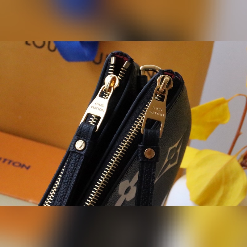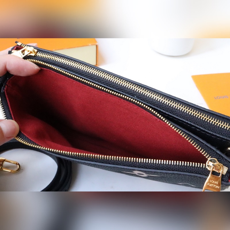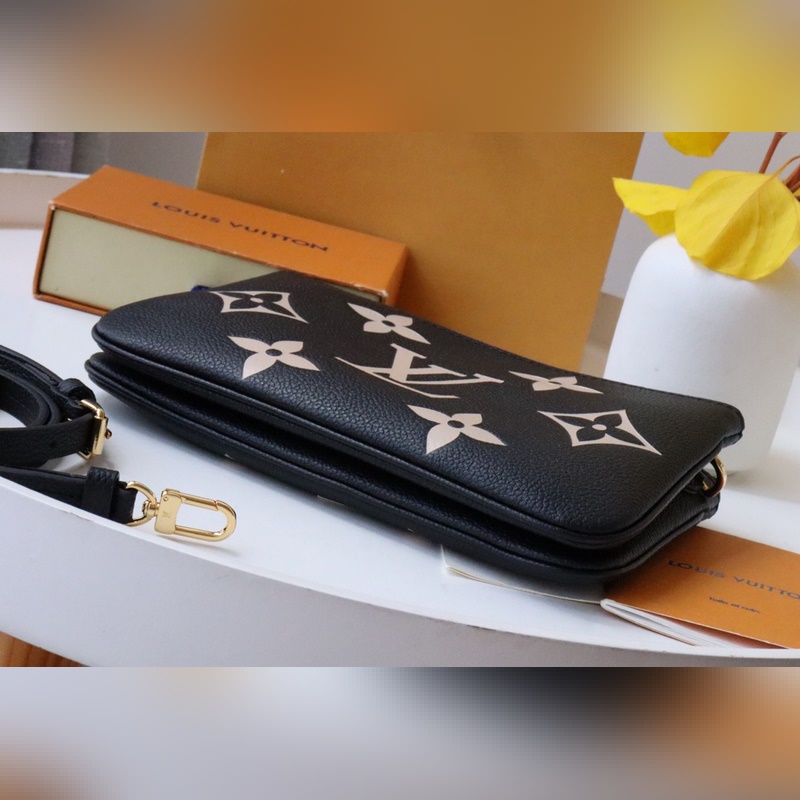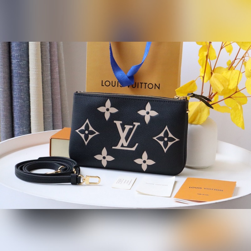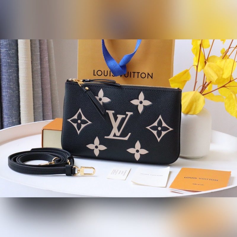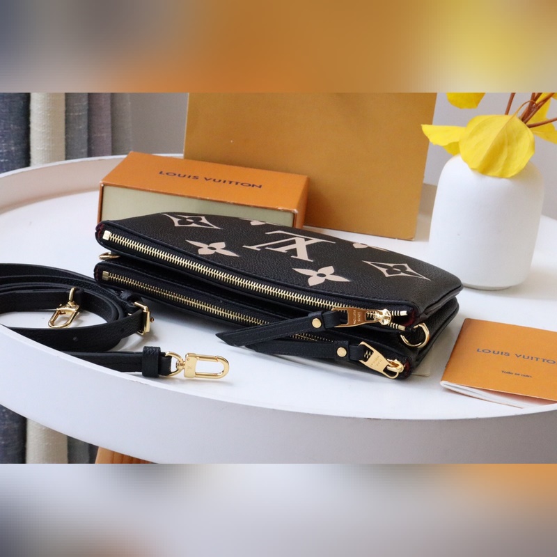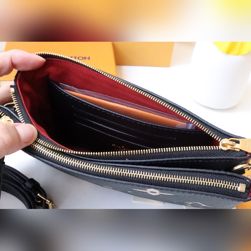 엠보싱 0 더블 지퍼 파첼트 핸드백 이 더블 지퍼 파첼레트 백은 모노그램 캔버스와 모노그램 자이언트 리버스 캔버스를 결합하여 클래식함과 트렌디함이 공존하는 스타일을 보여줍니다. 지퍼 포켓 중 하나는 일상용품들을 보관할 수 있는 카드 홀더가 장착되어 있고 중앙 공간은 지폐를 넣고 꺼내기 편리하며 탈부착이 가능하고 길이 조절이 가능한 가죽 어깨끈은 다양한 운반 스타일을 가능하게 합니다. 크기 20.0 x 12.5 x 3.0 cm