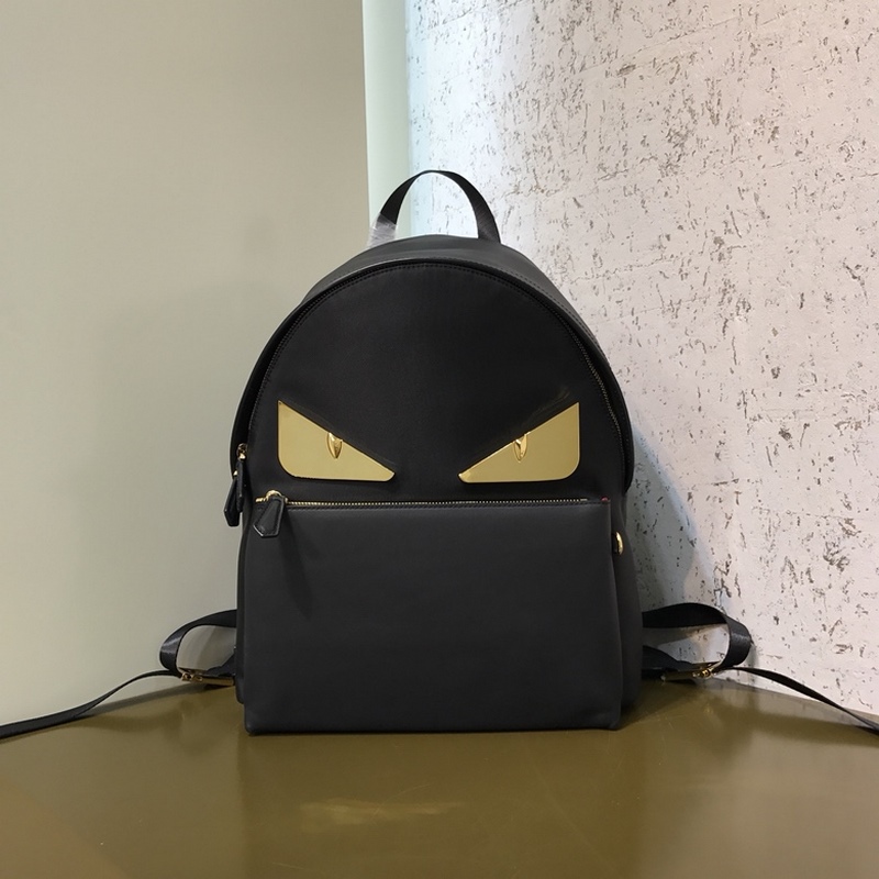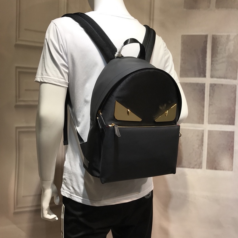 FENDI 2352 나일론 백팩 BAG BUGS 아이 패턴 앞면 지퍼 포켓 통기성 테크니컬 메시 소재 뒷면 더블 지퍼 잠금장치 내부 포켓. 크기 31cm*11*36cm
