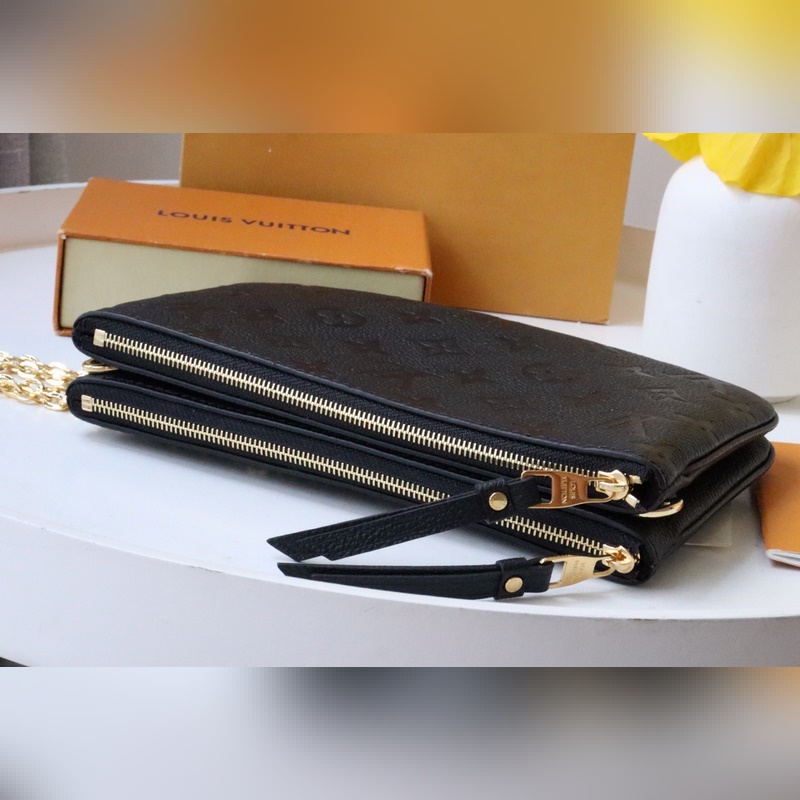돋을새김 더블 지퍼 파첼트 핸드백 이 더블 지퍼 파첼레트 백은 모노그램 캔버스와 모노그램 자이언트 리버스 캔버스를 결합하여 클래식과 트렌디의 조화를 보여줍니다. 지퍼 포켓 중 하나에는 일상용품들을 보관할 수 있는 카드 홀더가 있고 중앙 공간은 지폐를 넣고 꺼내기 편리하며 탈부착이 가능하고 길이 조절이 가능한 가죽 어깨끈을 사용하여 다양한 방법으로 휴대할 수 있습니다. 크기 20.0 x 12.5 x 3.0 cm