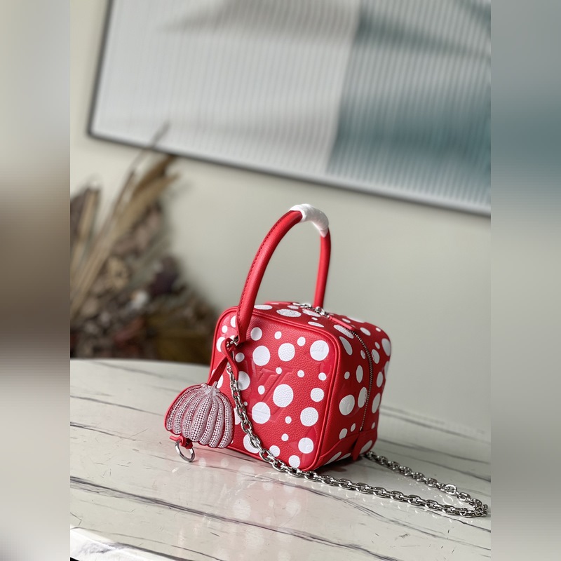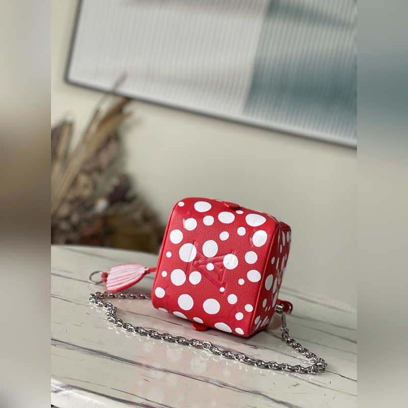 최고 품질의 정품 M21779 이 LV x 쿠사마 야요이 컬렉션의 LV x 쿠사마 야요이 스퀘어 백은 세계적으로 유명한 예술가와 브랜드의 장인 정신에 경의를 표합니다. 양각 모노그램 소가죽은 쿠사마 야요이의 작품에서 시대를 초월한 주제를 나타내는 무늬인 무한한 우주의 물방울 무늬 속으로 빠져듭니다. 불사조 모양의 장식은 예술가의 또 다른 상징적인 이미지를 나타냅니다. 크기: 16 × 16 × 16cm