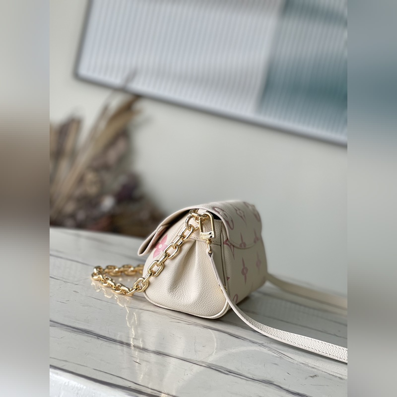 최고급 오리지널 M46393 부드러운 그레인 가죽 소재에 엠보싱 처리된 대형 모노그램 패턴이 돋보이는 인기 핸드백 고급스러운 느낌을 주는 부드러운 주름 연속적인 사용을 위한 자석 잠금장치. 탈부착 및 길이 조절이 가능한 어깨끈으로 짧은 어깨에 메거나 크로스 바디로 메는 것이 가능하고 탈부착 가능한 체인은 저녁 행사에 적합합니다. 크기: 24 x 14 x 9cm