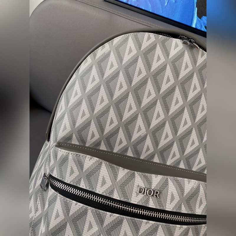 DIOR 다이아몬드 프린트 RIDER 배낭 CD 다이아몬드 패턴과 부드러운 소가죽 가방 유니섹스 대용량 학교 가방 정교한 상감 세공 기법으로 제작된 클래식하고 다용도 실제 제품 사진 오리지널 원단 영수증과 더스트 백과 함께 제공 30 x 40cm.