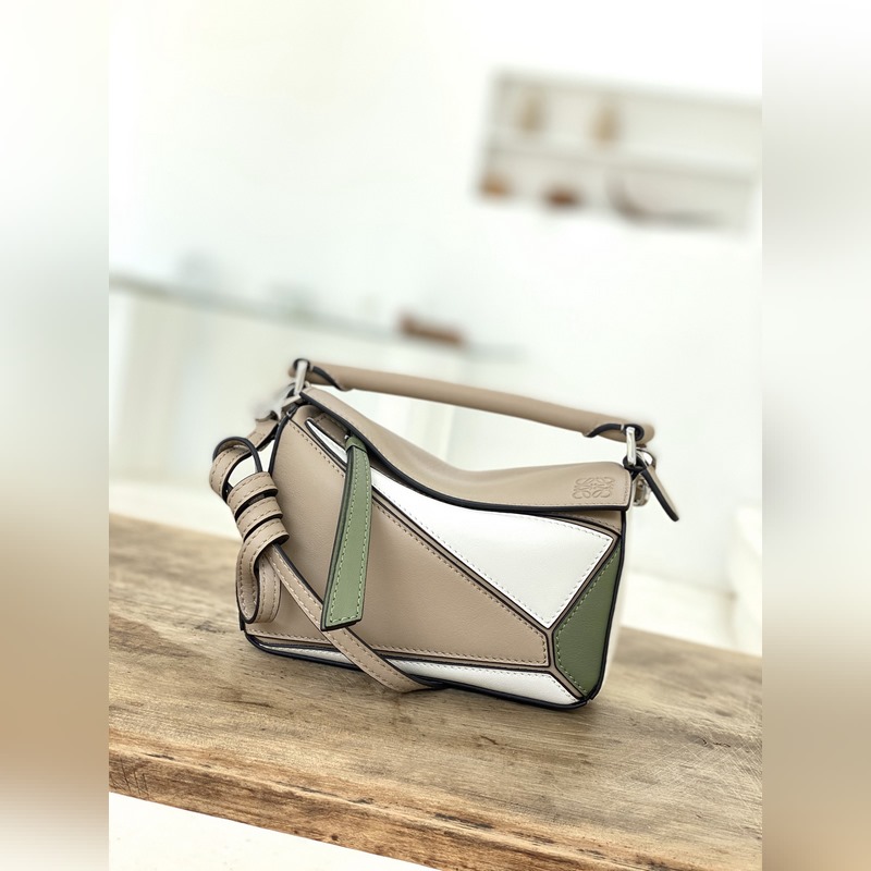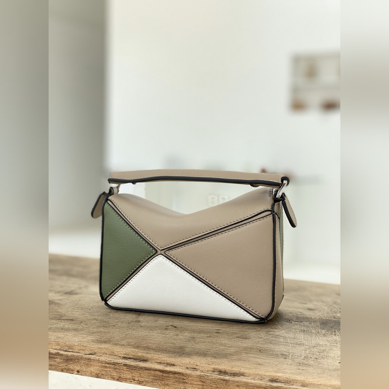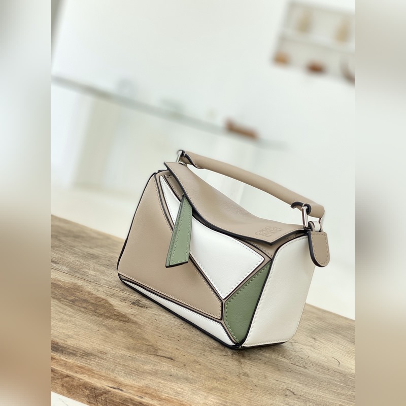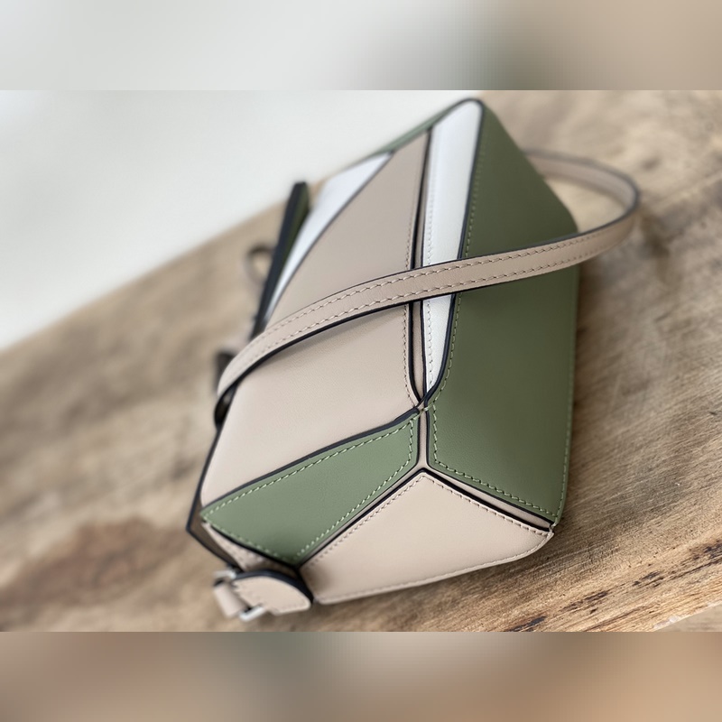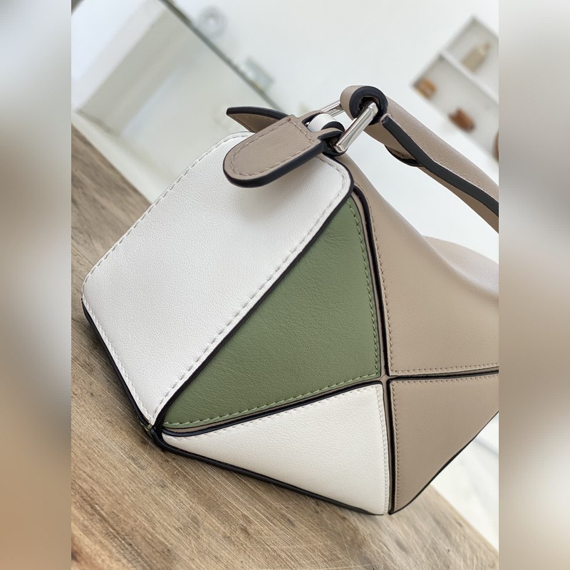 (10173) 미니 퍼즐: 시대를 초월한 미니 퍼즐 기하학적인 가방 18cm 독일에서 수입한 사피 실 수입한 듀르크롭 장비 45도 각도의 O자형 스페인 송아지 가죽 커스텀 제작 독점적인 CNC 조각 하드웨어 크기: 18*7.5*12cm