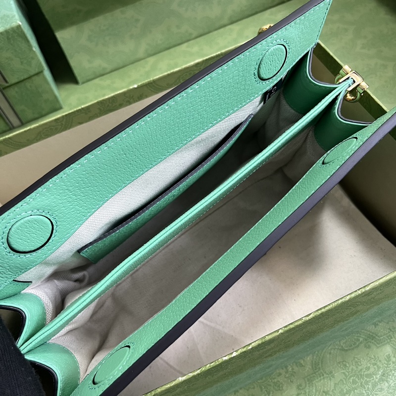 오피디아 시리즈 슈퍼 GG 스몰 숄더백. 오피디아 시리즈 체인 숄더백은 새로운 색상과 원단을 사용하여 브랜드의 클래식한 디자인을 계속해서 업데이트하고 있습니다. 클래식한 GG 모노그램 패턴을 과장되게 표현한 이전의 슈퍼 GG와는 달리 이 베이지와 그린 스몰 숄더백은 패턴을 생생하게 해석합니다. 깔끔한 모양에 마그네틱 버튼 디자인이 더해졌고 GG 모양의 액세서리가 더욱 매력적입니다. 베이지와 민트 그린 슈퍼 GG 캔버스. 민트 그린 가죽 파이핑 골드 톤 하드웨어 면과 린넨 안감의 GG 수작업으로 그린 테두리 두 개의 수납공간 내부 오픈 포켓 자석 걸쇠가 달린 금속 체인 숄더 스트랩(43cm 드롭). 무게: 약 0.6kg. 모델: 503877. 크기: 26(가로) x 17.5(세로) x 8cm(깊이) 색상: 민트 그린/대형 G 캔버스.