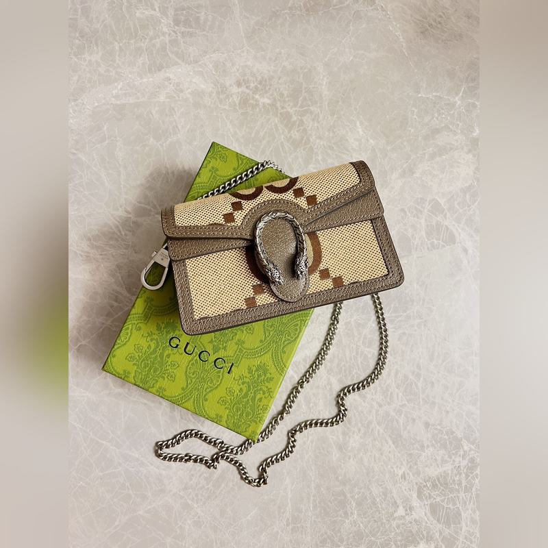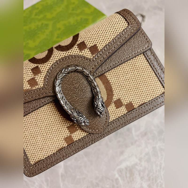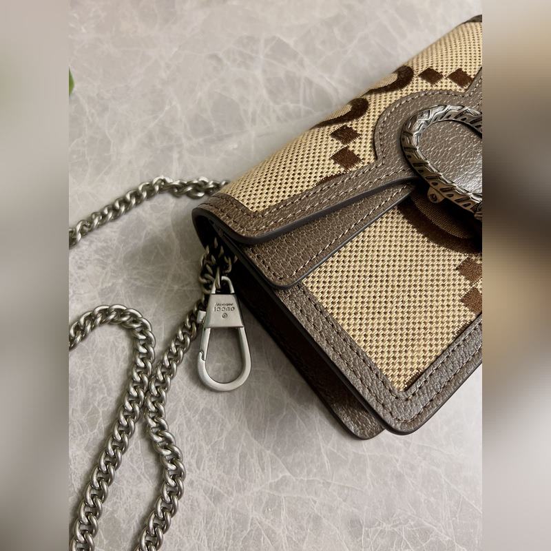 최고 품질의 오리지널! 구찌의 다이아나 미니 디오니소스 체인백은 브랜드의 특징적인 요소인 모노그램 패턴이 엮인 디테일을 담고 있습니다. 더블 G 패턴의 캔버스로 제작된 이 체인백은 세련된 디오니소스 버클이 특징이며 이를 독창적으로 사용하여 심플하고 우아한 느낌에 현대적인 감각을 더했습니다. 모델: 476432 크기: 16.5x10x4.5cm
