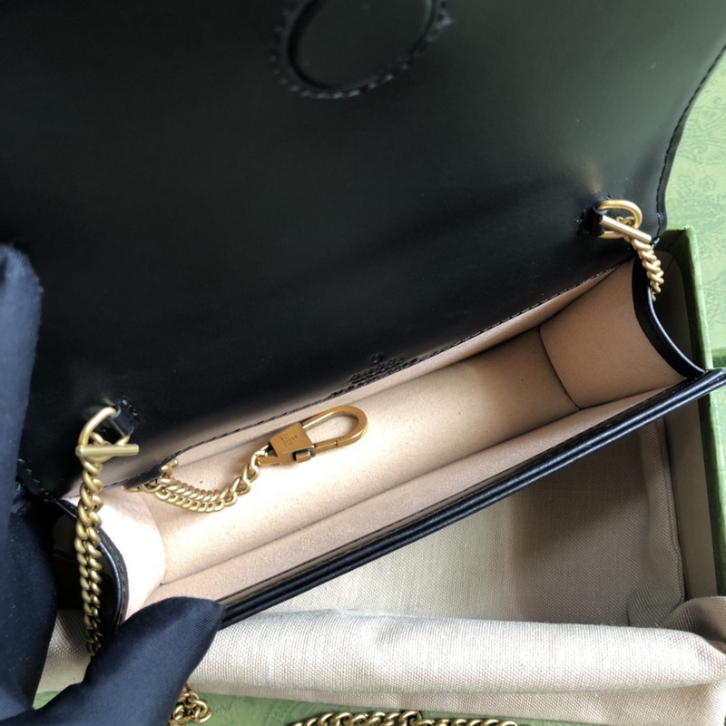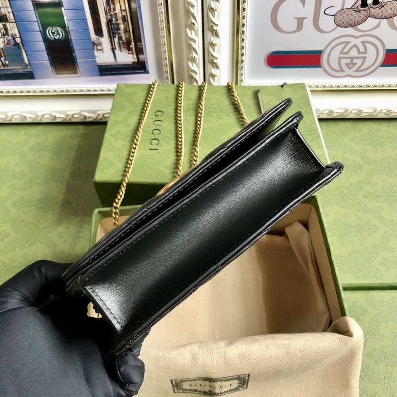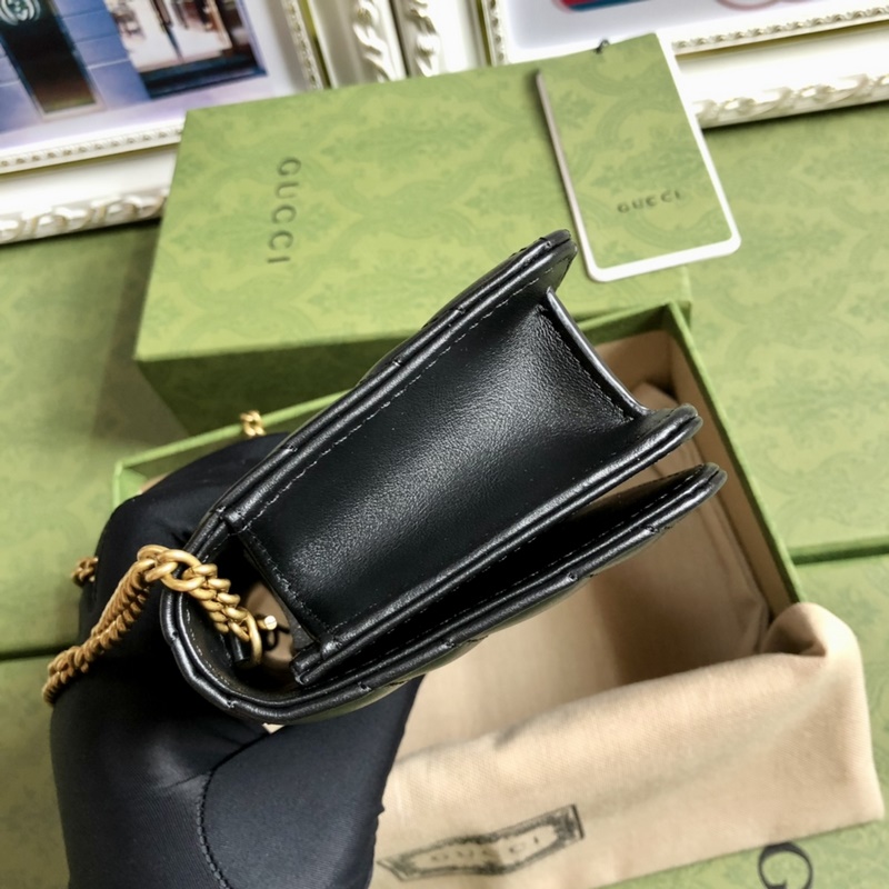 (원피혁) 녹색 상자 포장 488426M34 G 홈 물결무늬 소가죽 미니 체인백 부드러운 구조의 형태 특징 복고풍 금색 더블 G 하드웨어가 달린 플랩 뒷면에 더블 G 자수 특징 퀼팅 처리된 사람 모양의 이탈리아 소가죽 구조적이고 부드러운 크기: 18/10/5cm