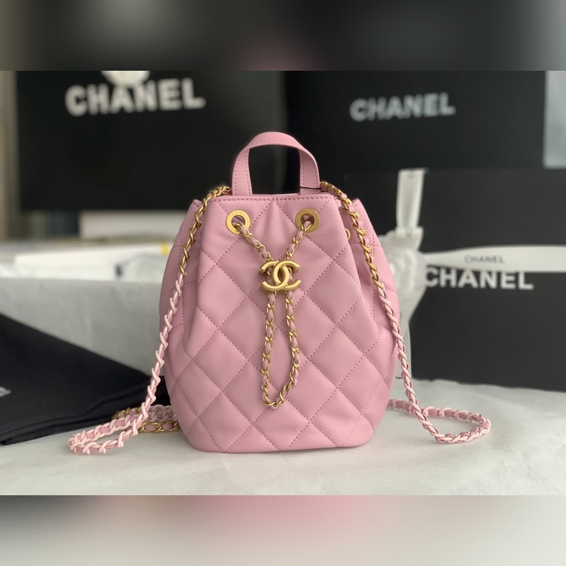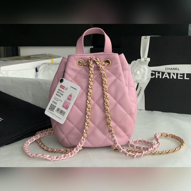 CHANEL: 모델: AS: 3211: 크기: 15X15X19Cm: 2022 최신 배낭 4가지 색상 재고 있음 양가죽 시리즈: 핸드백 스포티한 디자인 스타일리시하고 귀여운 드로스트링 버킷 백 양가죽의 질감은 부드럽고 편안하며 섬세하며 컬러 체인은 여성용 긴 치마와 잘 어울리는 멋진 레보이 느낌을 줍니다.