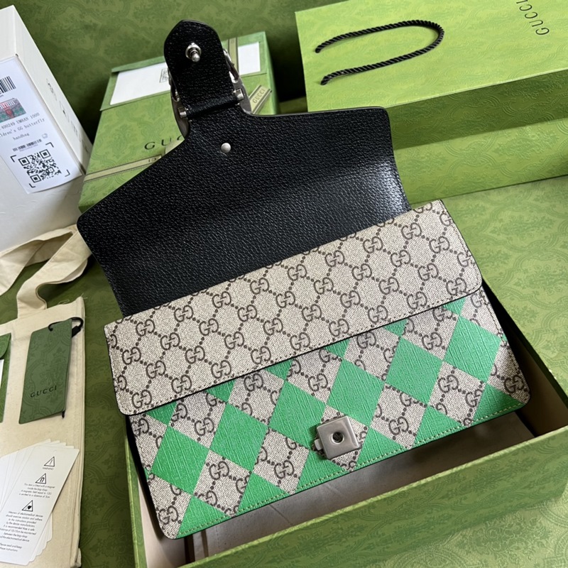 디오니소스 시리즈 핸드백 이 제품은 기수들의 장엄한 유니폼을 연상시키는 화려하고 밝은 기하학 무늬가 특징인 구찌 퍼레이드 컬렉션의 멋진 제품입니다. 이름은 경마장의 모래 링 또는 안장 구역에서 영감을 얻었습니다. 경주 전에 말이 구역을 돌면서 몸을 풀기 때문에 관중들은 이 구역에서 자신이 좋아하는 말을 고를 수 있습니다. 세련된 패턴과 센텀 프린트가 결합되어 이 디오니소스 미니백에 우아한 매력을 더해줍니다. 모델: 400249. 크기: 28*18*9cm. 색상: 갈색 PVC/인쇄.