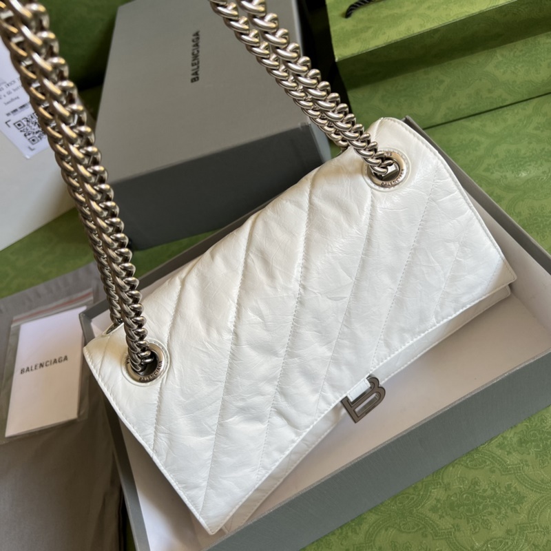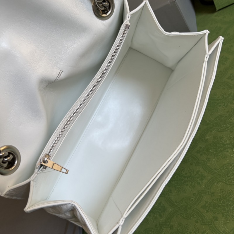 발렌시아가 22번째 가을/겨울 시리즈에서 ? 크러쉬 강력하고 실용적인 대형 가방이 다시 돌아왔습니다! 크러쉬는 모래시계 모양의 모래시계 가방 형태를 기반으로 하며 앞면에 B자 모양의 금속 클래식 로고가 있습니다. 매우 부드러운 송아지 가죽은 특별한 마감 처리를 통해 종이처럼 주름진 질감을 줍니다. 대각선 퀼팅 패딩 공정을 통해 매우 부드럽고 탄력 있는 다운 슈트 느낌을 줍니다! 가방은 용량이 크고 내부 수납 공간이 여러 개 있어 편리합니다. 두꺼운 금속 체인 숄더 스트랩은 길이를 자유롭게 조절할 수 있습니다. 체인 숄더백으로 착용하든 체인 핸드백으로 착용하든 아니면 팔 아래에 매달고 다니든 전혀 다른 분위기를 연출할 수 있습니다. 모델: 716393. 크기: 31x19.8x6.9cm. 색상: 흰색/갈라진 가죽.