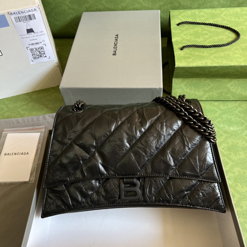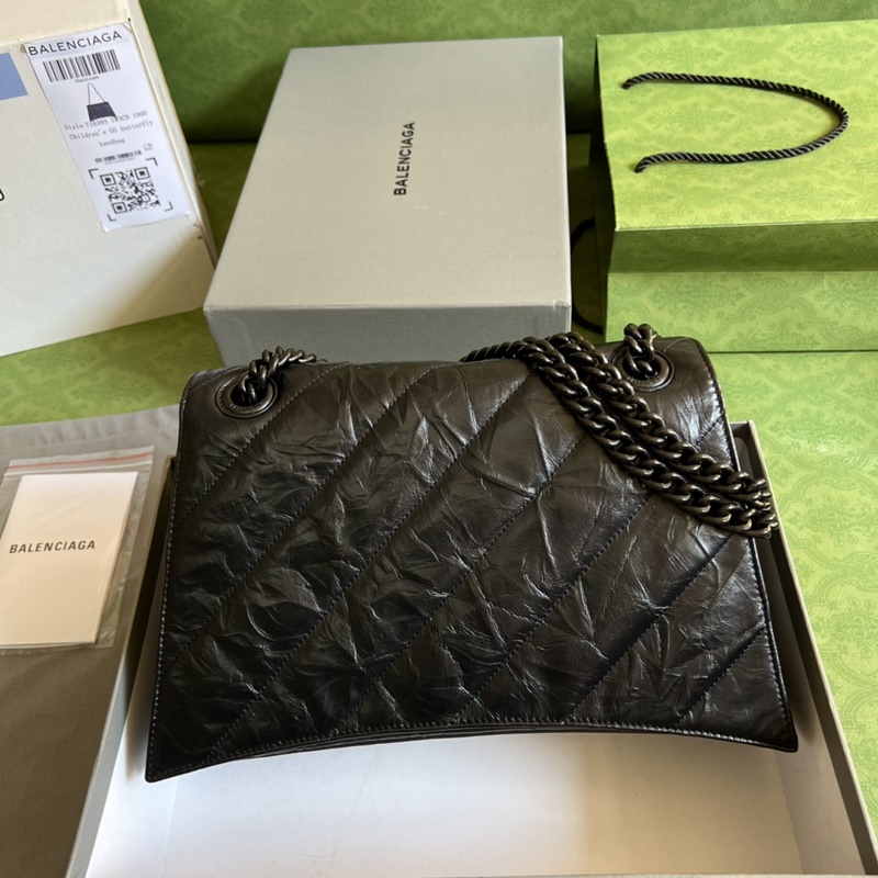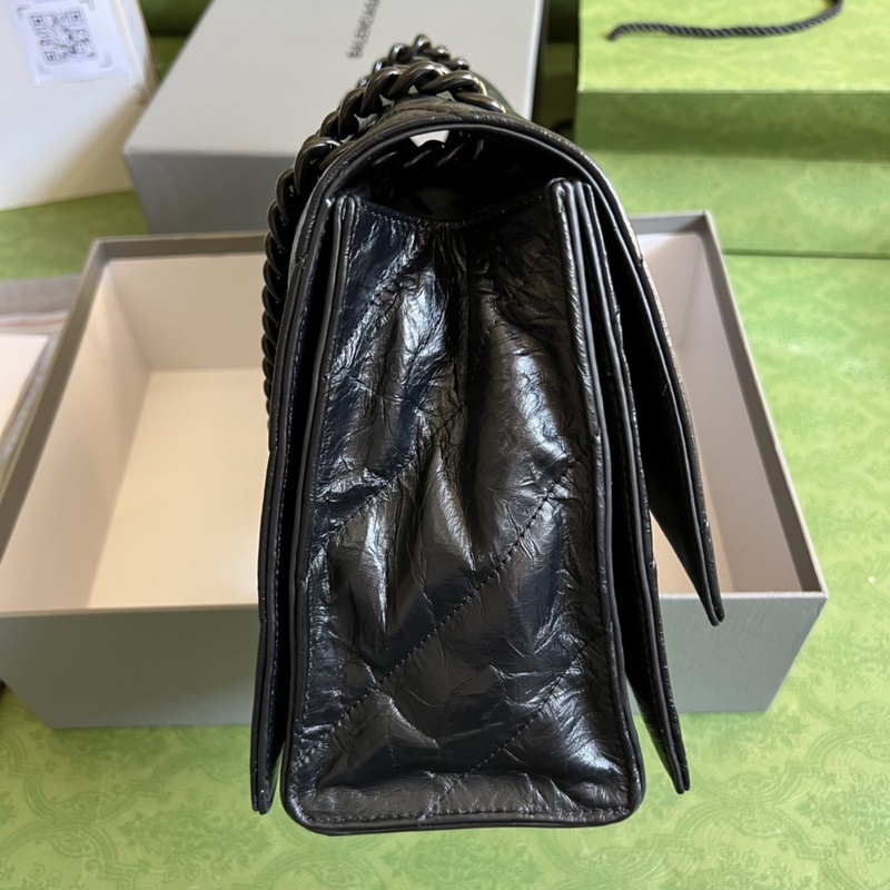 발렌시아가 22번째 가을/겨울 시리즈에서 ? 크러쉬 강력하고 실용적인 대형 가방이 다시 돌아왔습니다! 크러쉬는 모래시계 모양의 모래시계 가방 형태를 기반으로 하며 앞면에 B자 모양의 금속 클래식 로고가 있습니다. 매우 부드러운 송아지 가죽은 특별한 마감 처리를 통해 종이처럼 주름진 질감을 줍니다. 대각선 퀼팅 패딩 공정을 통해 매우 부드럽고 탄력 있는 다운 슈트 느낌을 줍니다! 가방은 용량이 크고 내부 수납 공간이 여러 개 있어 편리합니다. 두꺼운 금속 체인 숄더 스트랩은 길이를 자유롭게 조절할 수 있습니다. 체인 숄더백으로 착용하든 체인 핸드백으로 착용하든 아니면 팔 아래에 매달고 다니든 전혀 다른 분위기를 연출할 수 있습니다. 모델: 716393. 크기: 31x19.8x6.9cm. 색상: 검은색/갈라진 가죽.