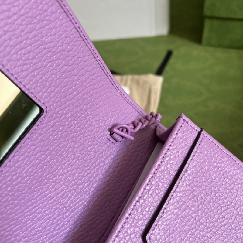 GG 마몬트의 체인 지갑은 이전 컬렉션의 디자인을 새롭게 해석한 것입니다. 선명한 라일락색 가죽으로 제작된 이 제품은 구찌 러브 마치 시리즈에 멋진 추가 제품입니다. GG Marmont의 더블 G 하드웨어는 1970년대 벨트 버클에서 영감을 받아 이 지갑에 톤온톤 레진으로 재현되었습니다. 클래식한 디자인과 톤온톤 컬러의 조합은 모던하고 스타일리시한 느낌을 강조합니다. 라일락 가죽 라일락 레진 하드웨어 더블 G 모티브 패브릭 안감 지퍼 및 오픈 포켓 카드 슬롯 6개 거울 스냅 버튼 잠금장치가 달린 탈착식 체인 숄더 스트랩(길이 60cm). 모델: 497985. 크기: 20(가로) x 12.5(세로) x 4cm(깊이) 색상: 라일락/투톤 풀 레더.