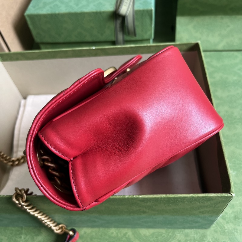 스타일리시한 느낌으로 새롭게 개선된 팻 스퀘어. 한눈에 알아볼 수 있는 퀼팅 원단과 더블 G 하드웨어를 갖춘 GG 마몬트 백은 브랜드의 상징이 되었습니다. 이 클래식한 라인은 매 시즌마다 구찌의 최신 미학을 반영하는 새로운 실루엣으로 선보입니다. 이 숄더백은 밝은 빨간색 가죽으로 제작되었으며 앤틱 골드 톤의 섬세한 디테일이 특징입니다. 모델: 739682. 크기: 18*13.5*8cm. 색상: 스칼렛 레드/오리지널 가죽.