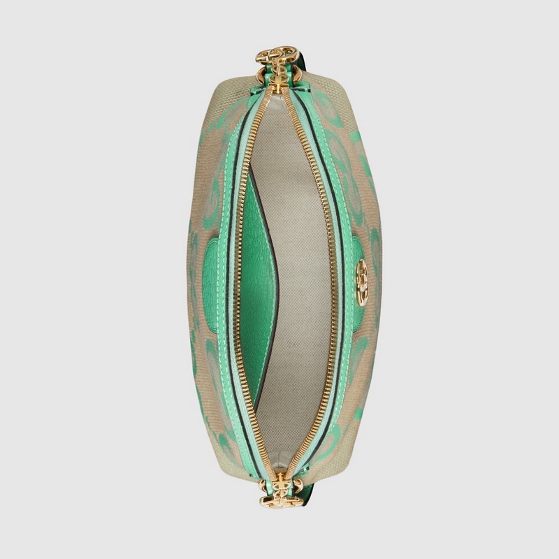 오피디아 시리즈 숄더백은 캔버스로 만들어졌으며 복고풍 스타일을 자아내는 돔 모양입니다. 클래식한 더블 G 글자 패턴을 과장되게 표현한 이전의 슈퍼 더블 G와는 달리 이 작은 카멜과 민트 그린 숄더백은 그 패턴을 생생하게 해석합니다. 세부 정보 숨기기 카멜과 민트 그린 슈퍼그립 캔버스 민트 그린 가죽 트림 금색 하드웨어 더블 지 지퍼 손잡이에 더블 G 펜던트 장식 내부 오픈 포켓과 휴대폰 포켓 높이 44cm의 조절 가능한 어깨 스트랩. 크로스 바디로 착용 가능. 지퍼 잠금 무게: 약 0.39kg 작은 사이즈: 23.5cm(가로) x 19cm(세로) x 8cm(깊이)