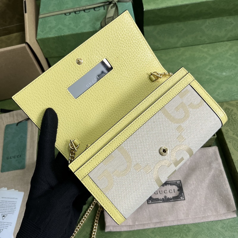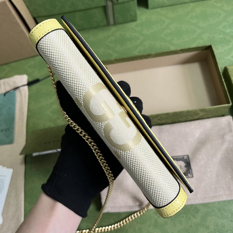 오피디아 시리즈 슈퍼 GG 미니 체인백. 슈퍼 GG 캔버스는 클래식하고 시대를 초월한 바나나 옐로우와 카멜 컬러의 조합으로 제공되며 이 조합은 소재의 역사적 기원을 계승합니다. 캔버스는 오랫동안 많은 시리즈에 사용되어 왔으며 브랜드의 상징적인 소재가 되었습니다. 오피디아 시리즈 체인백은 깔끔한 모양을 가지고 있으며 같은 색상의 바나나 옐로우 가죽 파이핑으로 장식되어 있습니다. 바나나 옐로우와 옐로우 GG 캔버스 슈퍼 GG 캔버스 바나나색 가죽 트림. 모델: 726497. 크기: 19(가로) x 10(세로) x 3cm(깊이) 색상: 바나나 옐로우 가죽/G 캔버스.