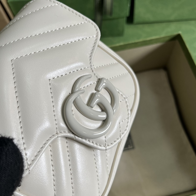 GG 마몬트의 퀼팅 허리 가방은 1970년대 탄생한 브랜드 아카이브 모티브입니다. 더블 G 세대는 클래식한 실루엣을 재창조하고 재활용하려는 구찌의 오랜 노력을 상징합니다. 이 톤 온톤 더블 G 액세서리는 현대적인 이야기를 담고 있으며 아카이브 요소가 이 GG 마몬트 화이트 V 퀼팅 가죽 허리 가방에 새로운 방식으로 영리하게 표현되어 있습니다. 화이트 V 퀼팅 가죽 화이트 팔라듐 마감 금속 부속품 세라믹 효과 마감 스웨이드 느낌의 구름 무늬 패브릭 마이크로파이버 혼방 안감 더블 G 내부: 카드 슬롯과 열쇠 고리 벨트 백 또는 숄더백으로 착용 가능 어깨끈 길이는 크기에 따라 다름 단추 잠금. 모델: 739599. 크기: 12(가로) x 12.5(세로) x 7cm(깊이) 색상: 흰색/천연 가죽. 무게: 약 0.332kg